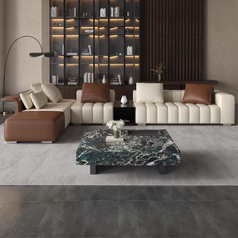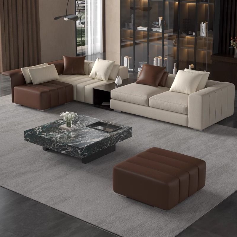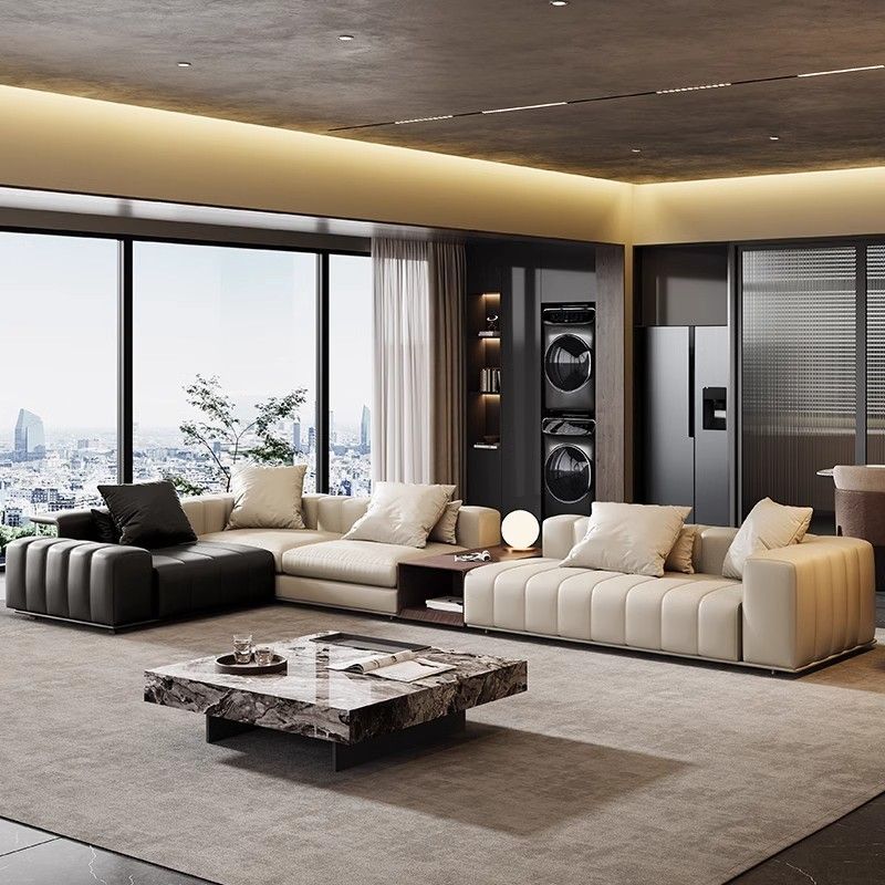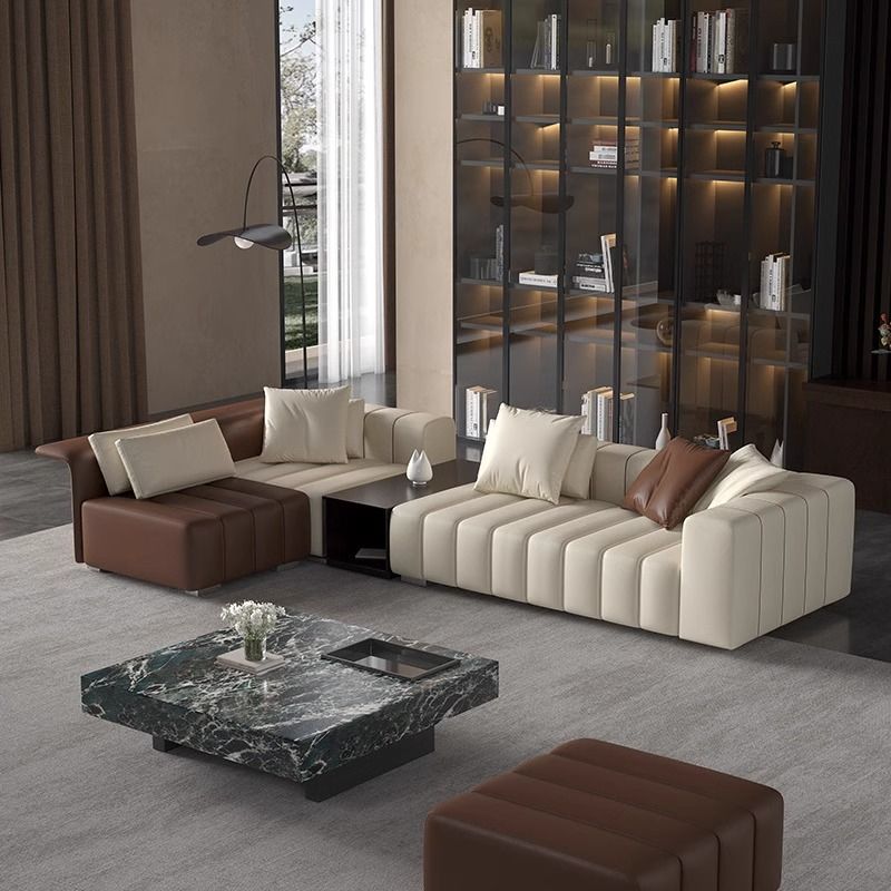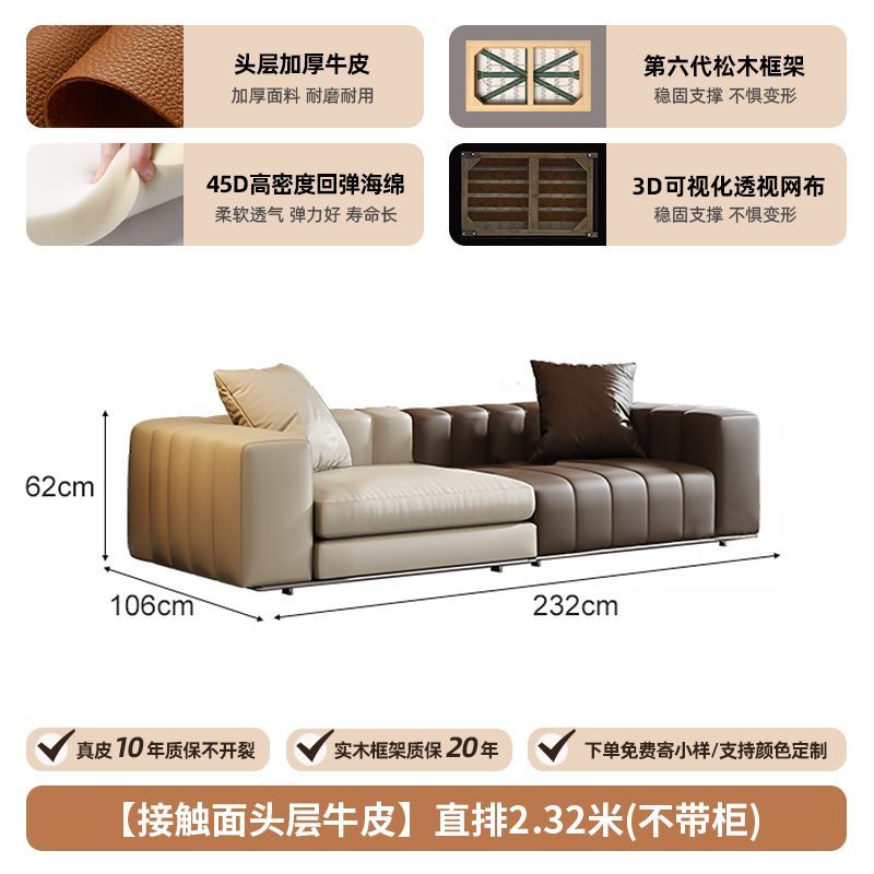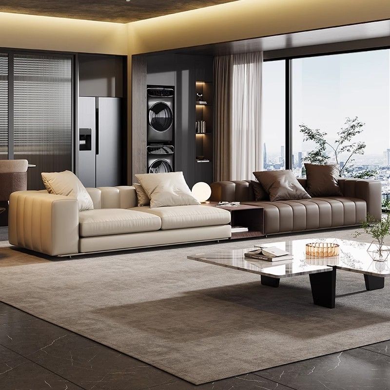 佐梵欧钢琴键沙发意式极简真皮沙发头层牛皮大户型别墅客厅轻奢