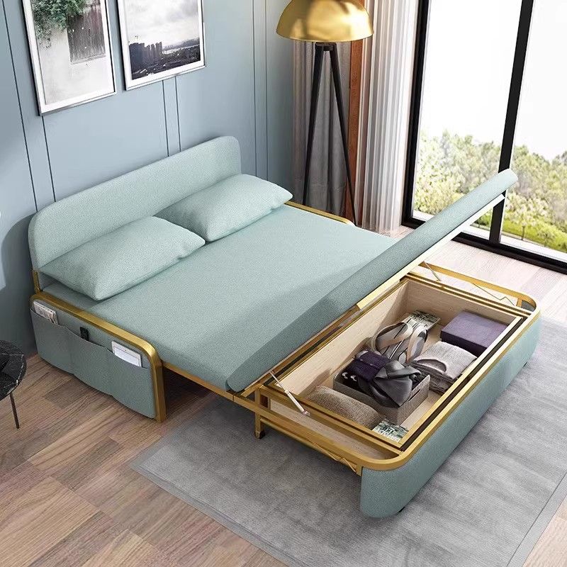 佛山工厂2025轻奢多功能两用单人伸缩小户型客厅储物可折叠沙发床