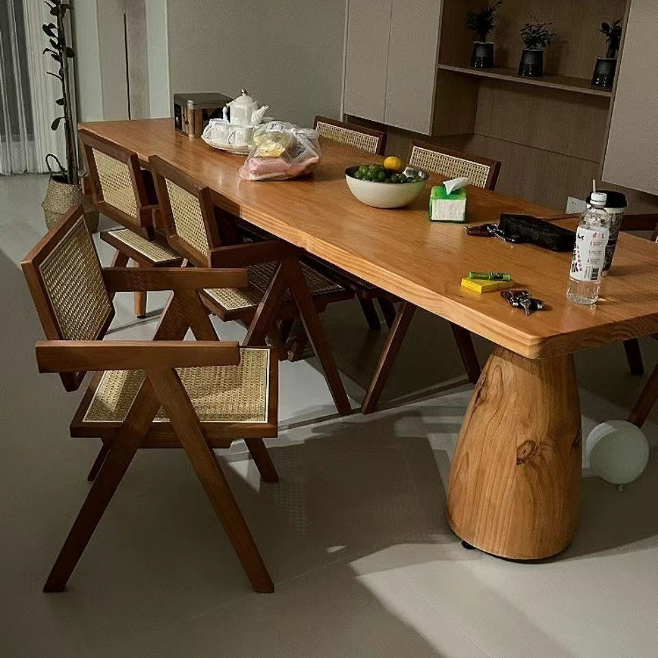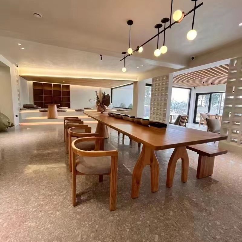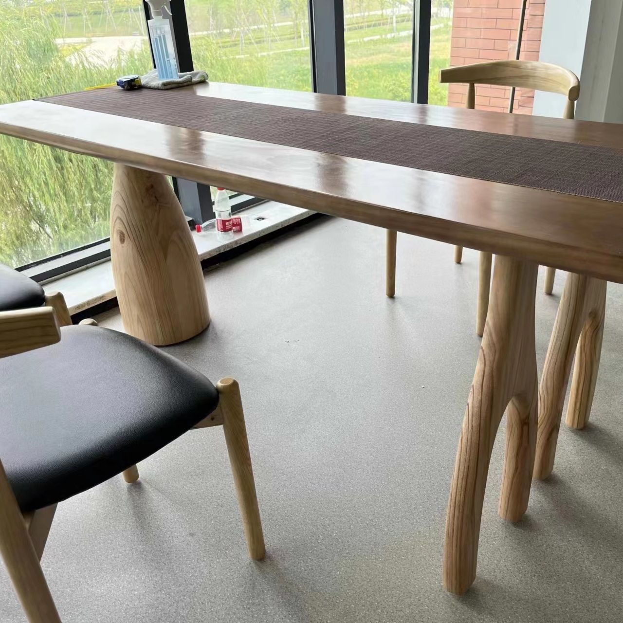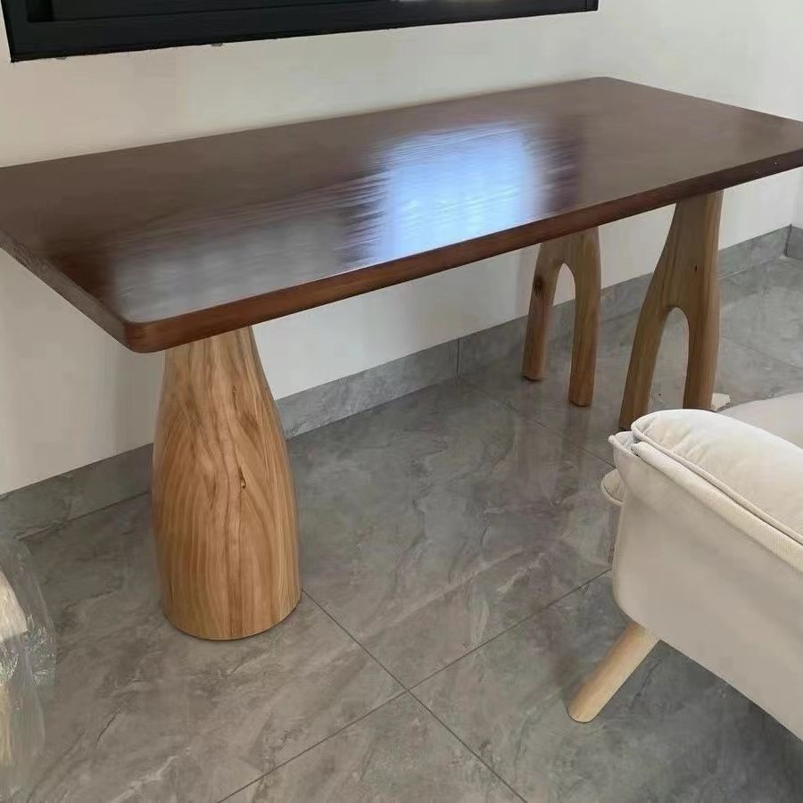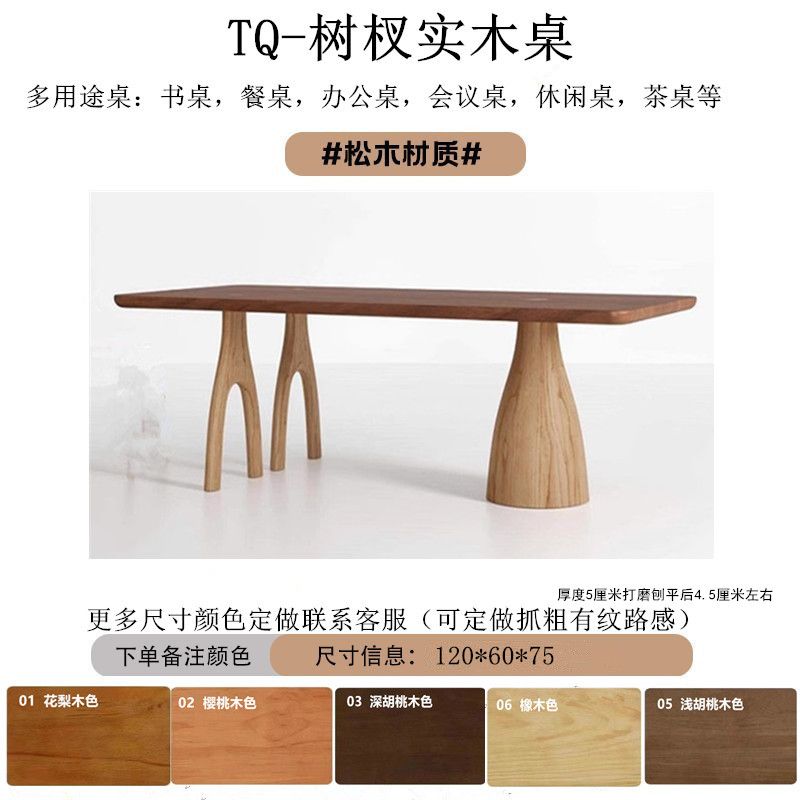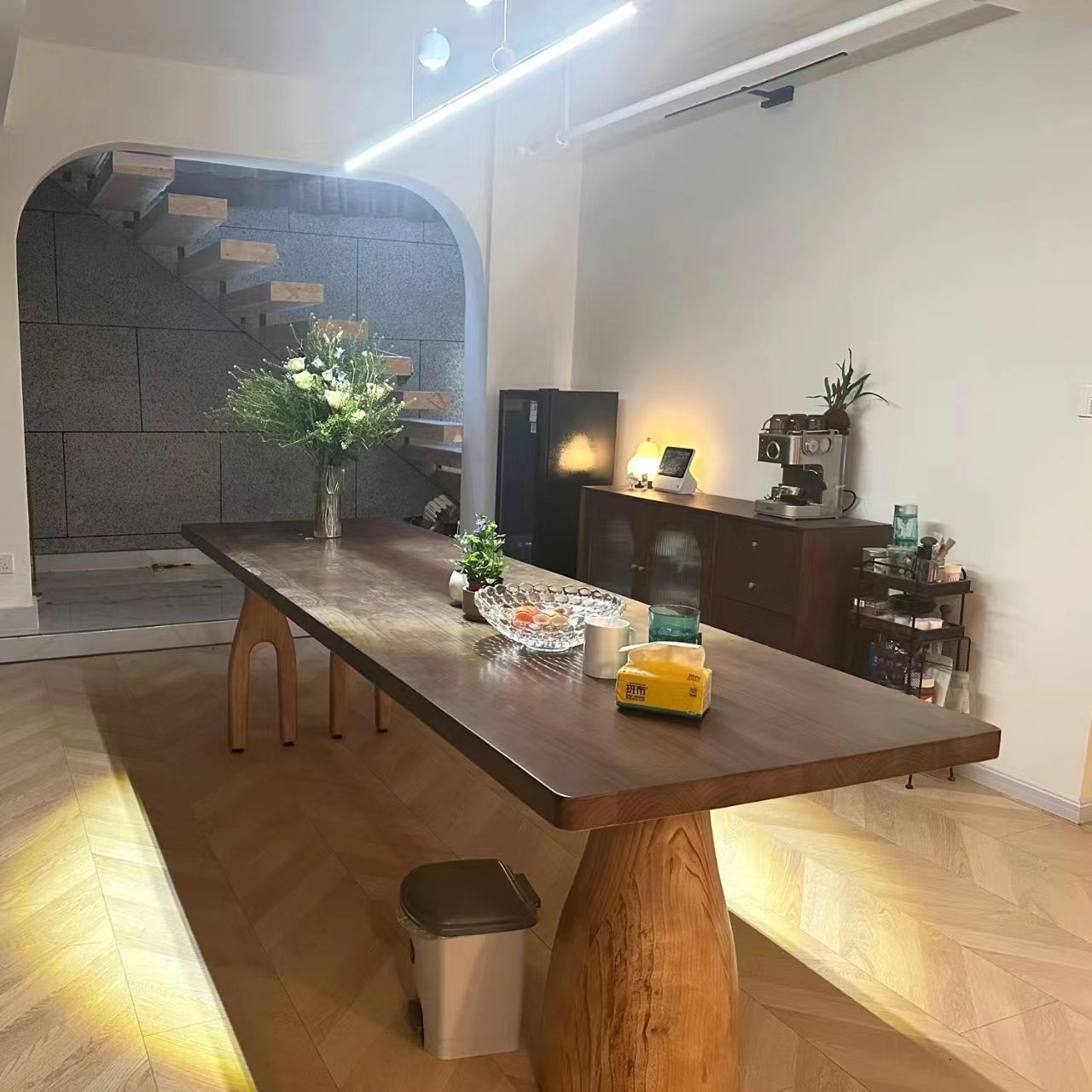 侘寂风家用小户型餐桌椅北欧实木长方大板中岛台书桌工作桌会议桌