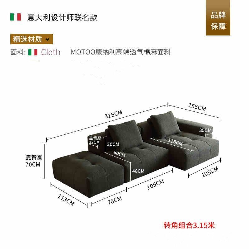 像素沙发高端棉麻黑色布艺沙发意式极简模块组合现代客厅转角沙发