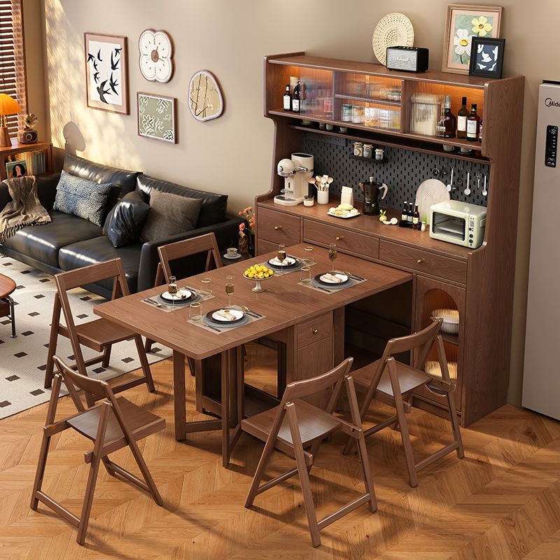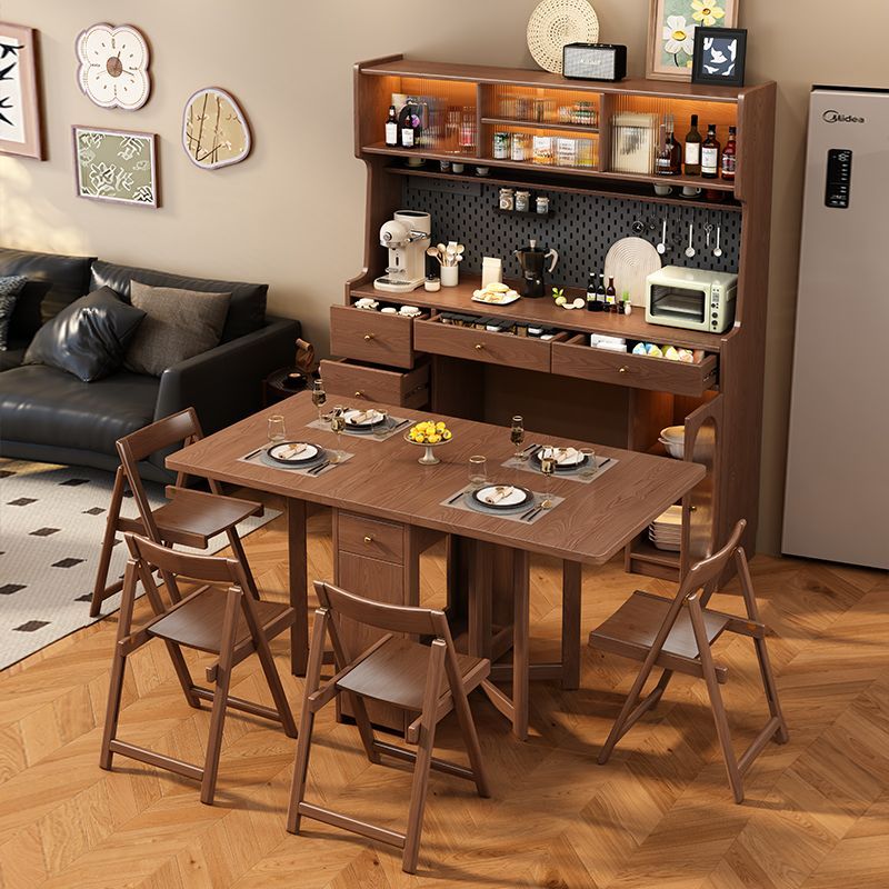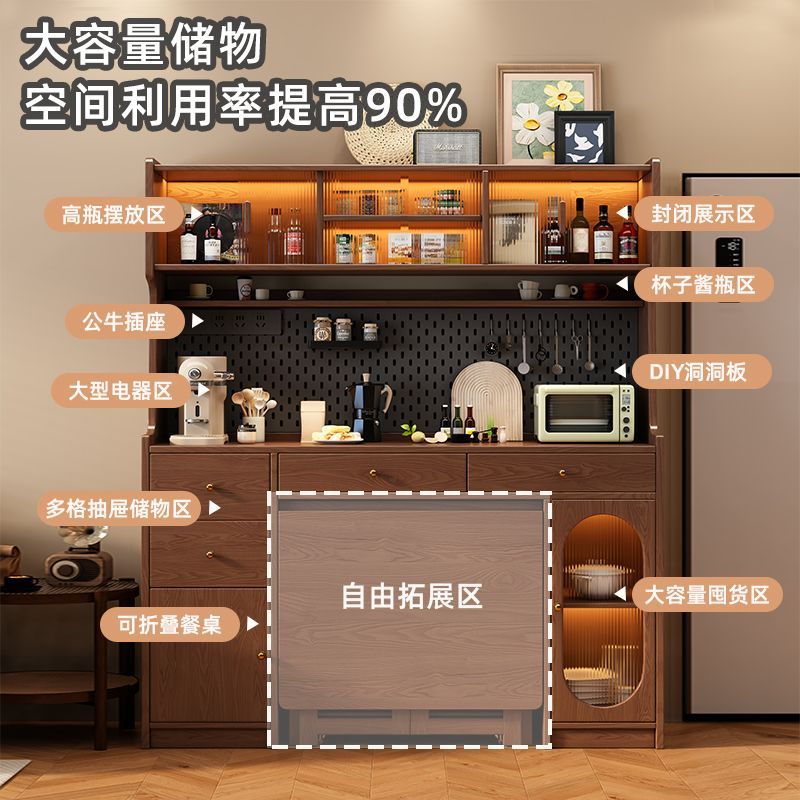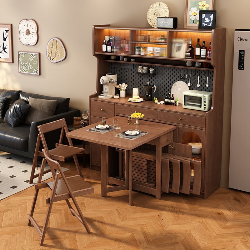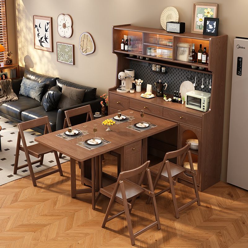 全实木折叠餐桌餐边柜一体桌家用小户型靠墙可伸缩移动多功能桌子