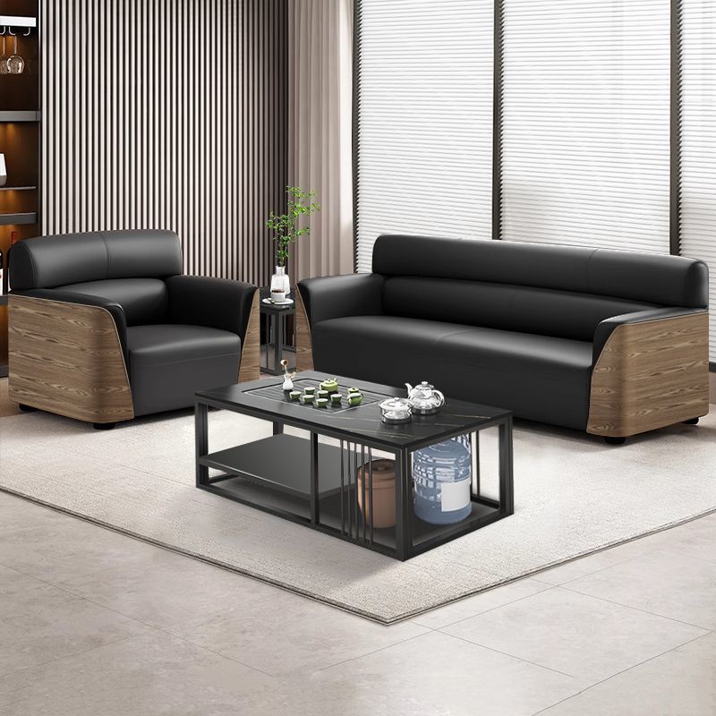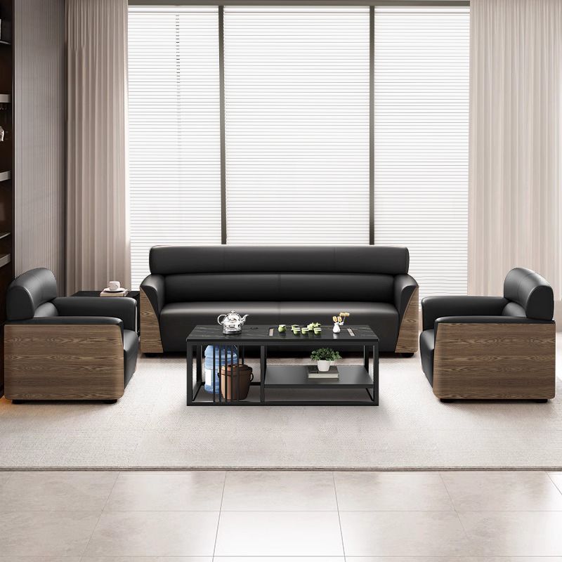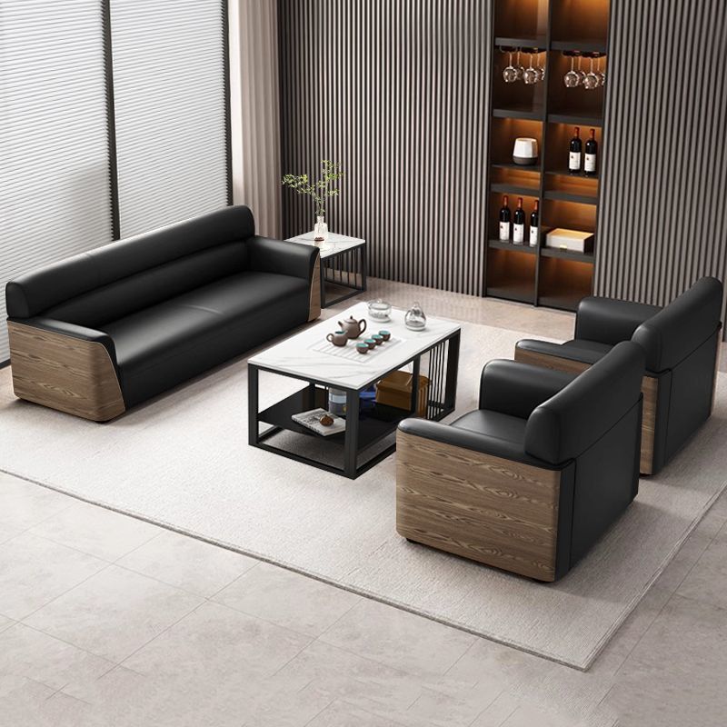 办公室沙发商务接待大厅会客区洽谈木纹轻奢办公沙发茶几组合套装