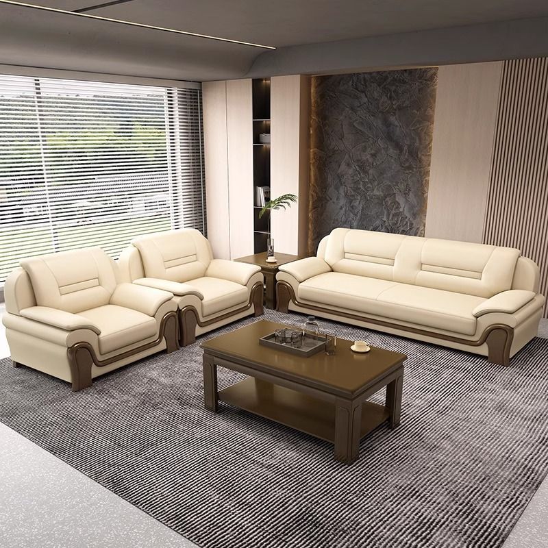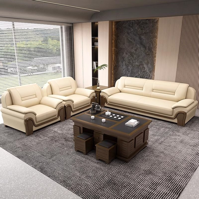 办公室沙发真皮现代高档三人位商务接待室会客区茶几套装沙发组合