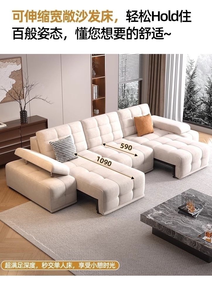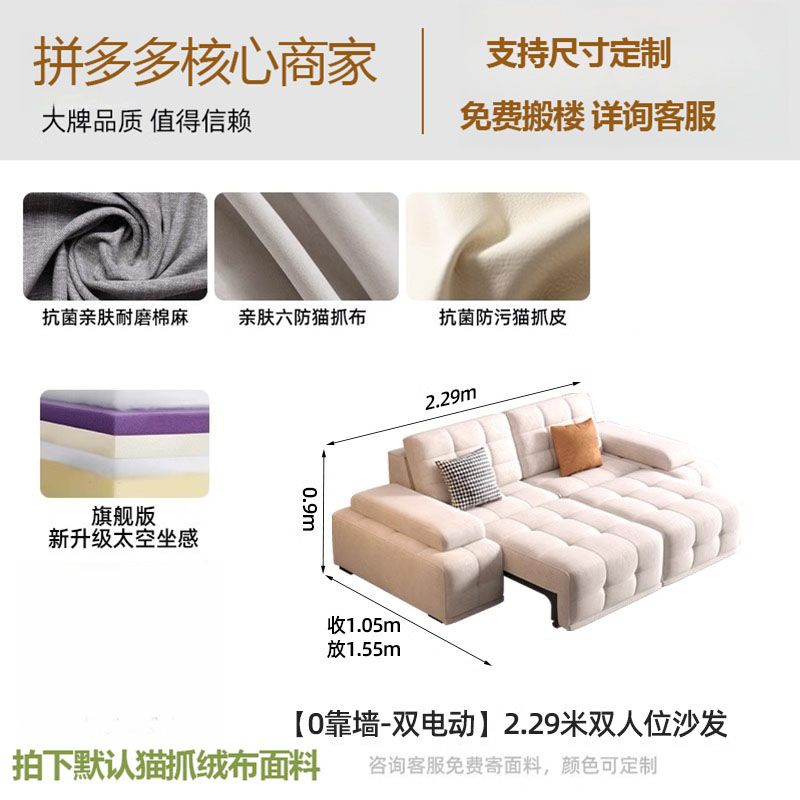 劳伦斯电动沙发床科技布小户型客厅功能沙发床猫抓布现代简约沙发