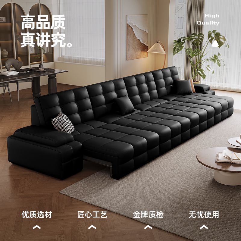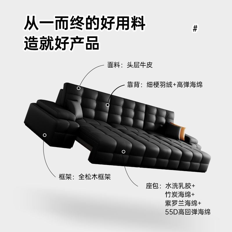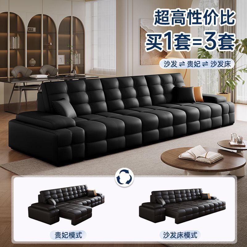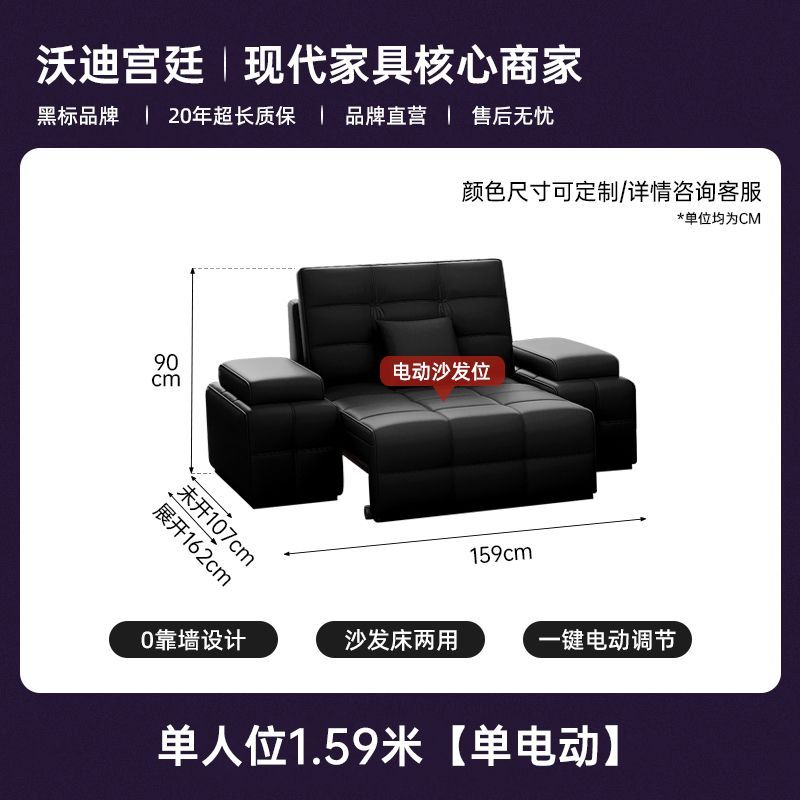 劳伦斯真皮电动沙发床功能客厅直排三人位新款黑色可伸缩一体两用