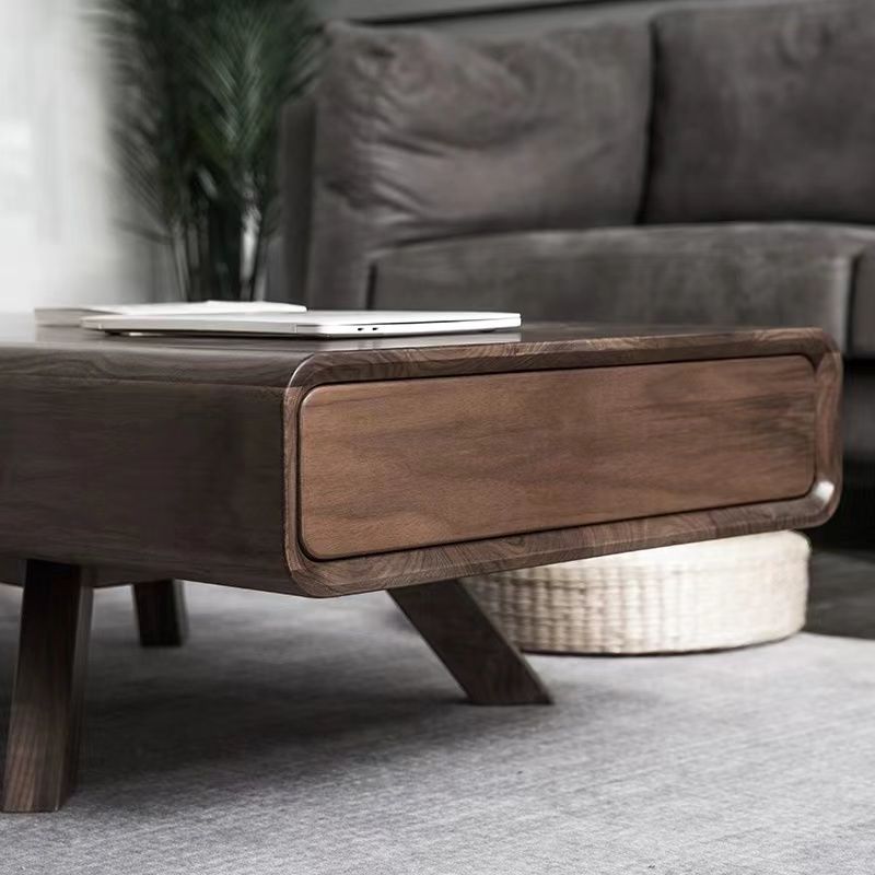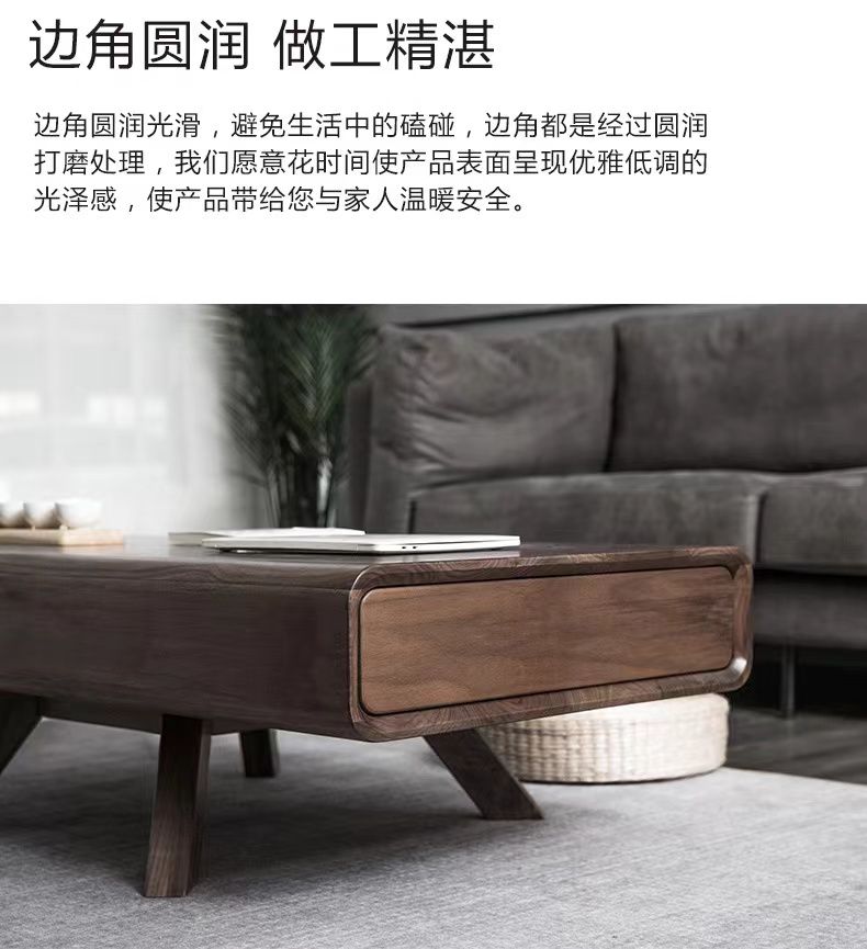 北欧全实木松木方形茶几客厅小户型轻奢现代储物茶桌实木茶几