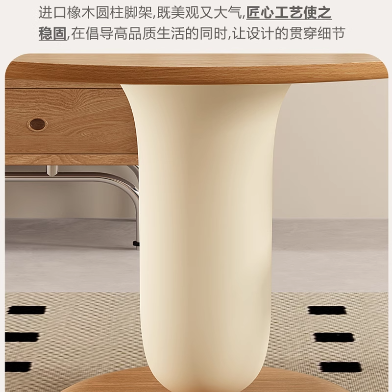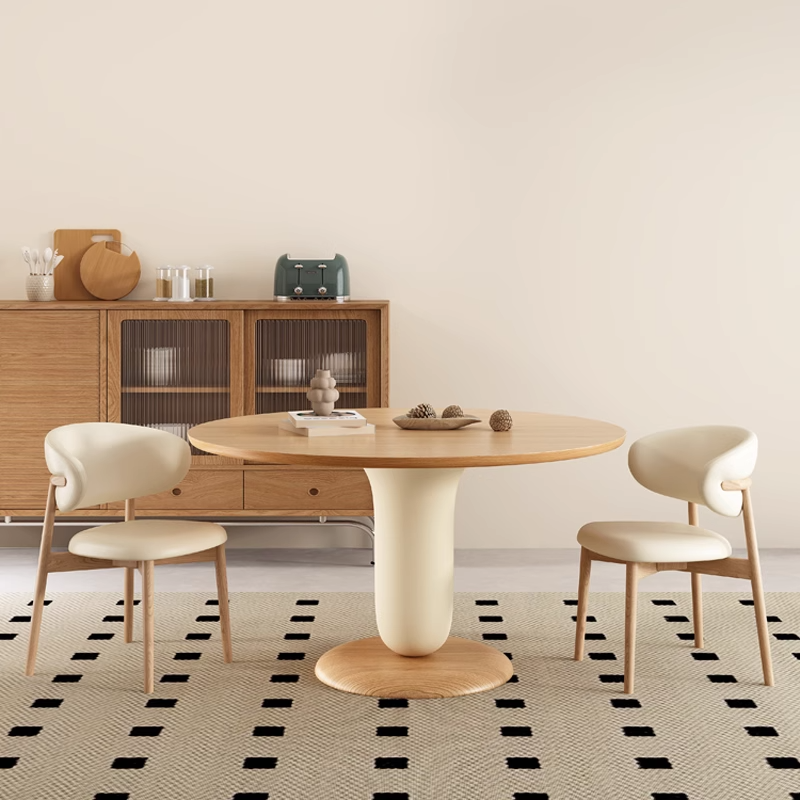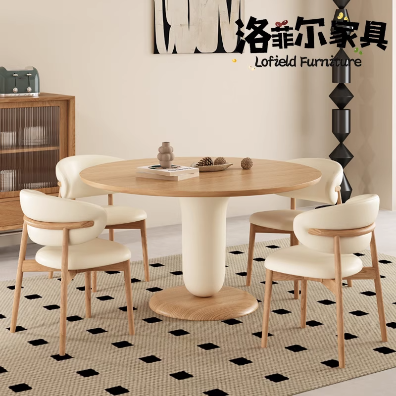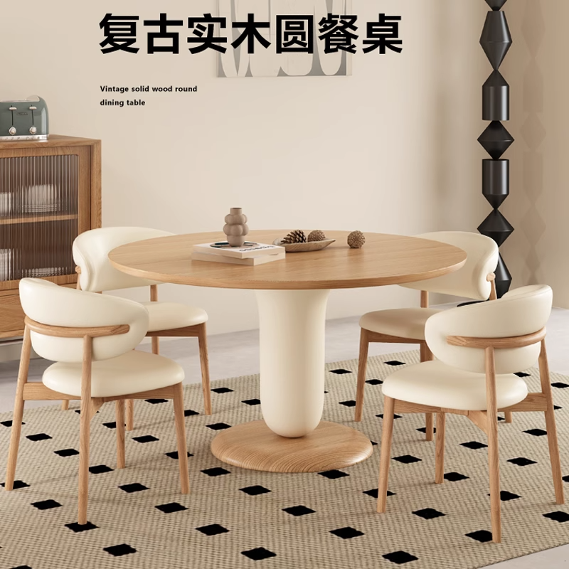 北欧实木奶油风原木圆形餐桌椅组合家用网红高端大小户型吃饭圆桌