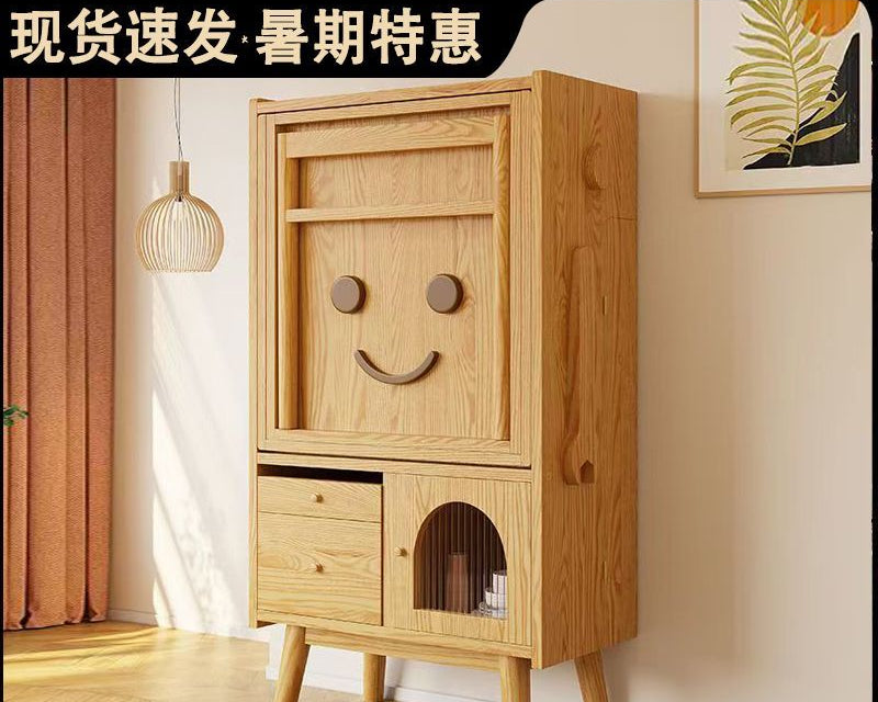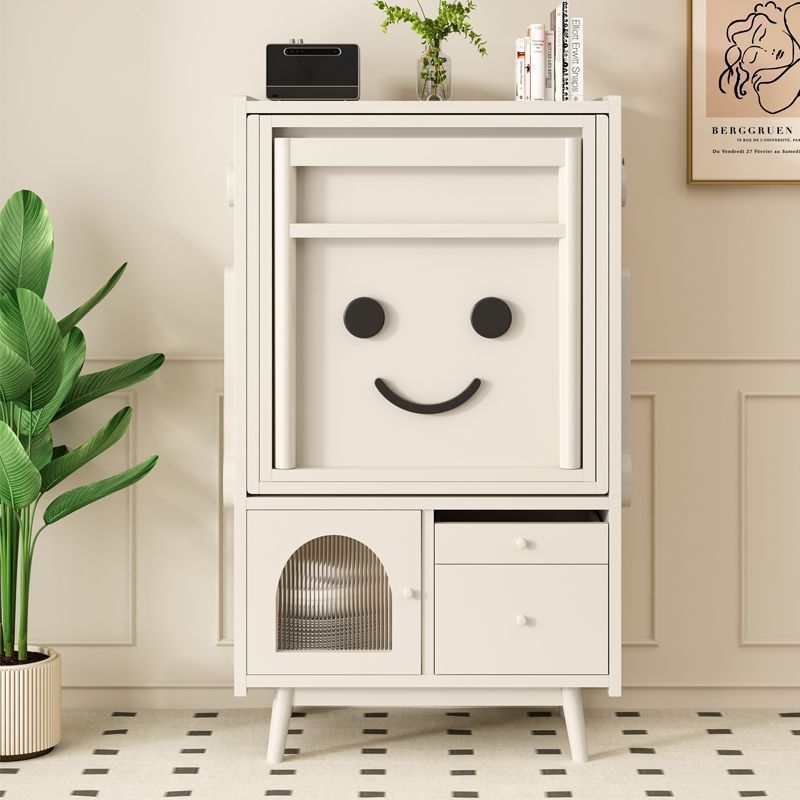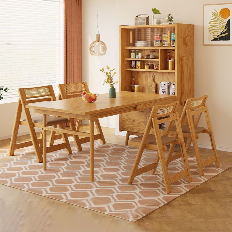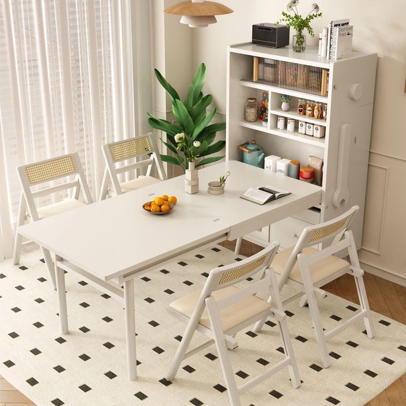 北欧折叠餐桌椅伸缩收纳实木长方形小户型吃饭桌子奶油餐边柜一体