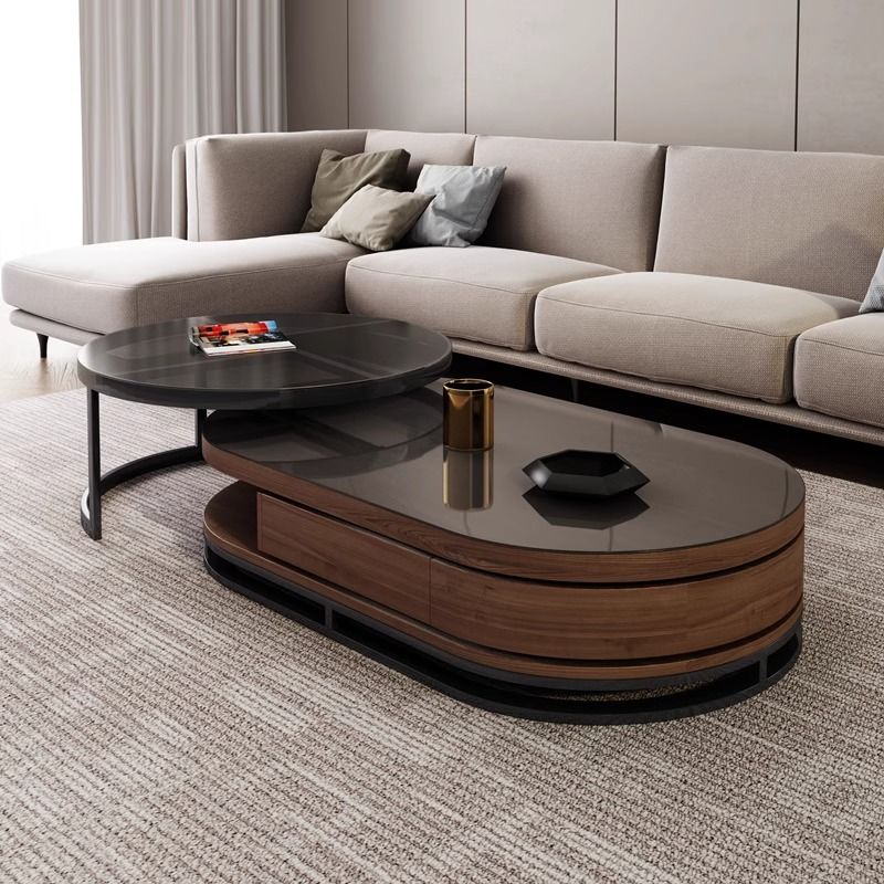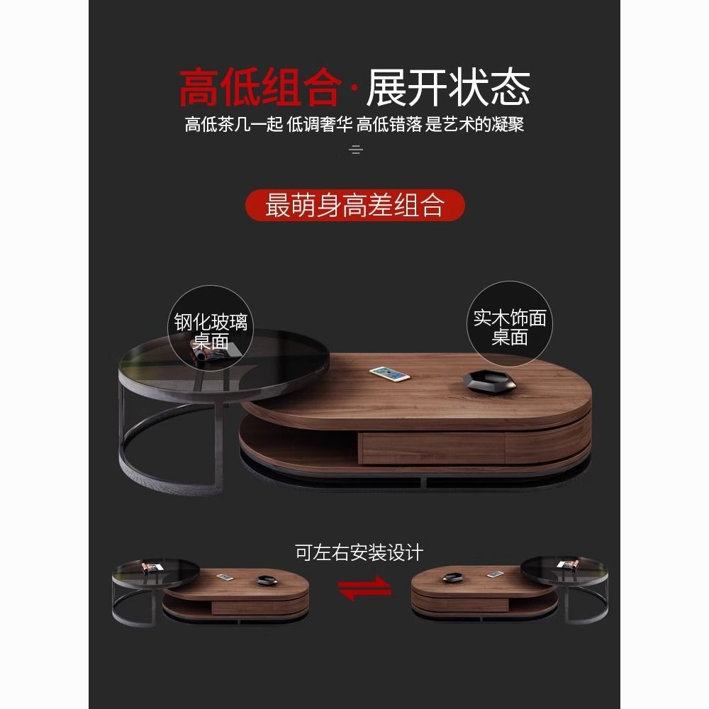 北欧轻奢茶几椭圆钢化玻璃小户型简约茶几客厅电视柜组合