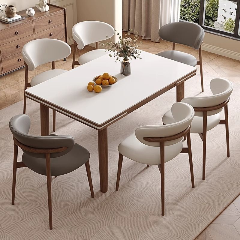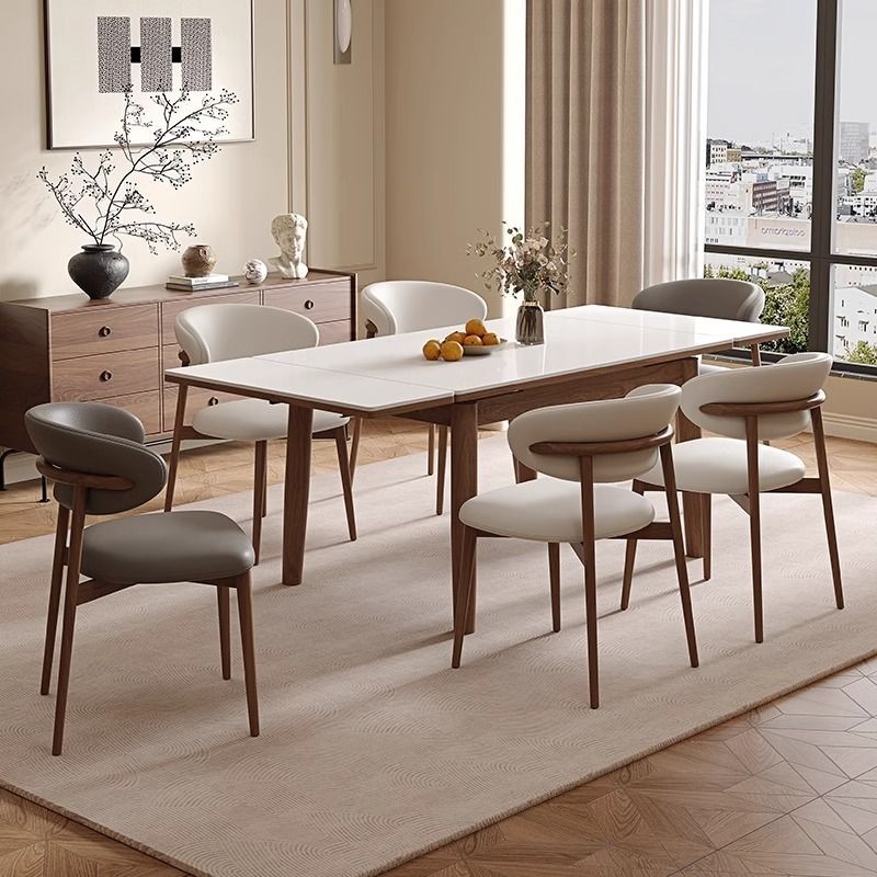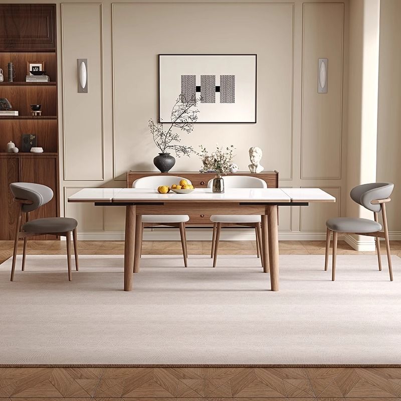 可伸缩长方形实木岩板餐桌折叠现代简约轻奢家用小户型胡桃色饭桌