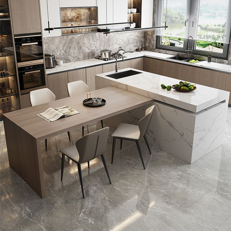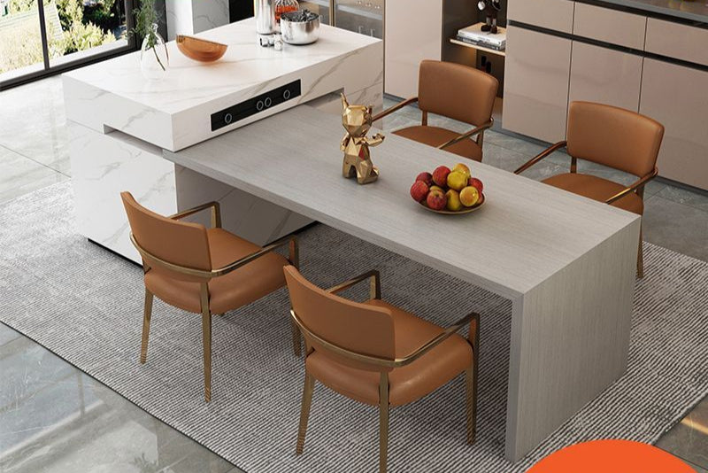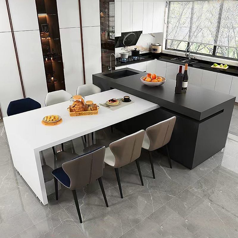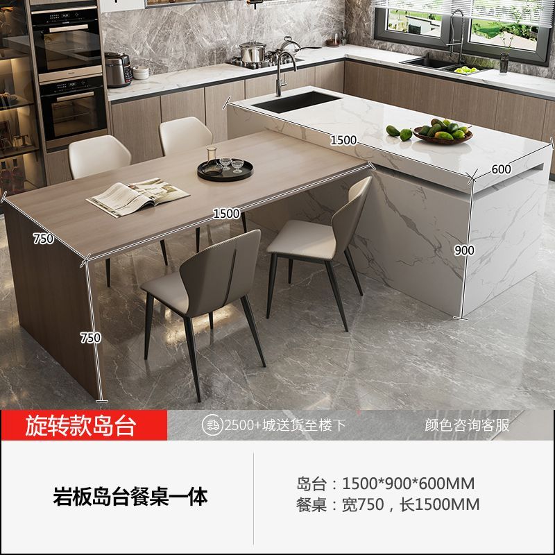 可定做岩板岛台餐桌一体中岛旋转伸缩移动水槽家用厨房倒台吧台
