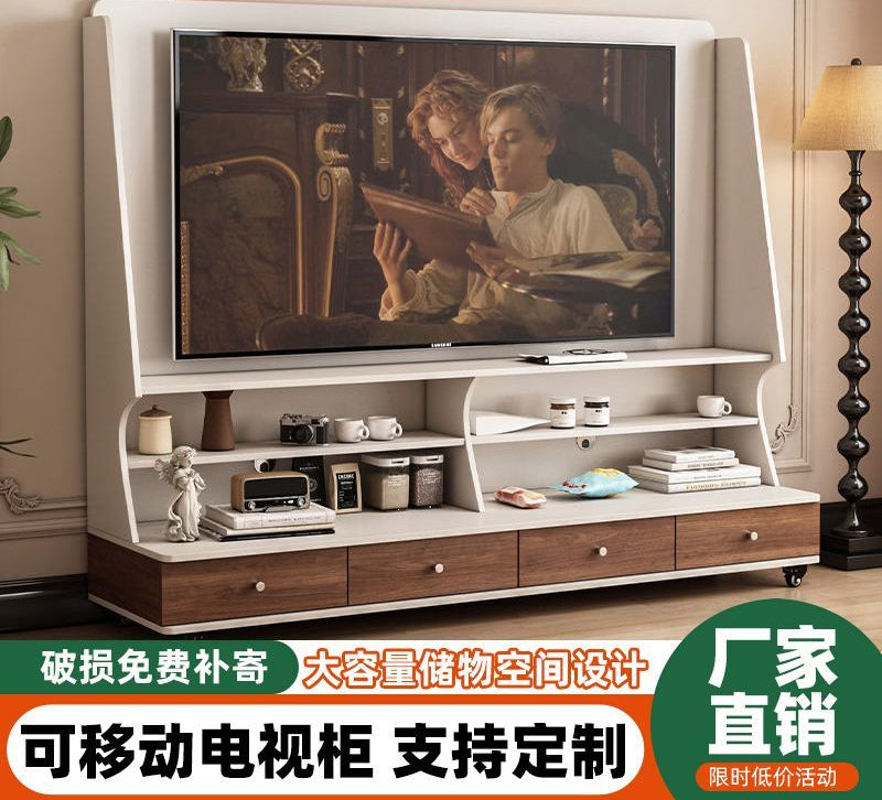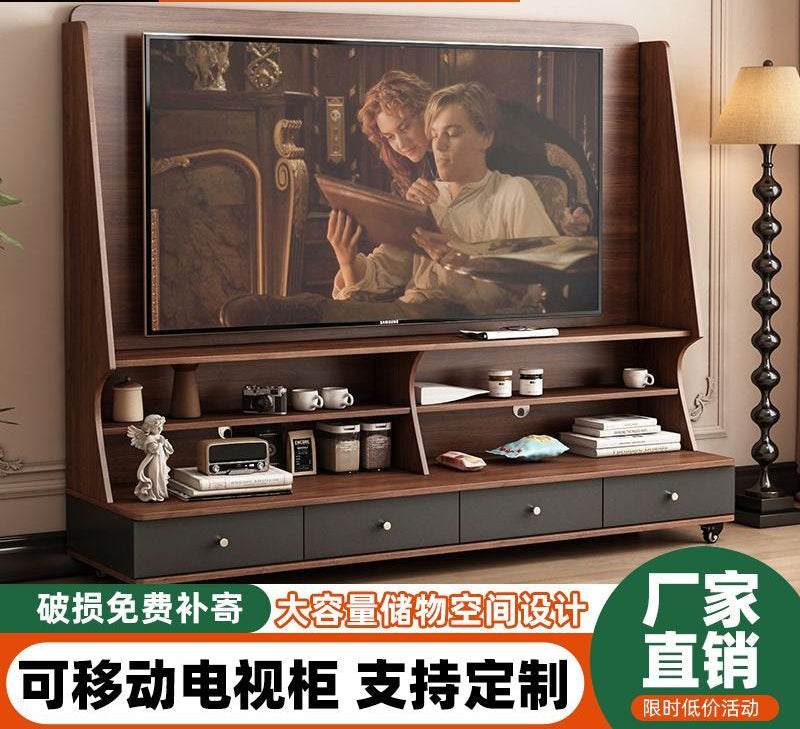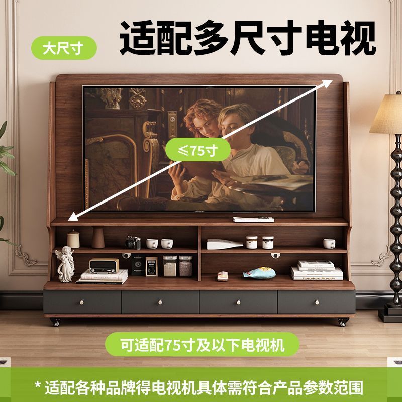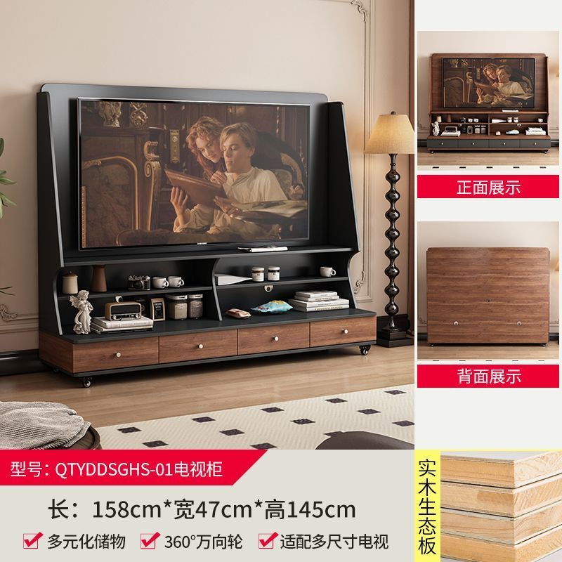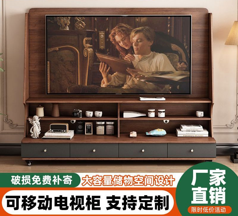 可移动电视柜实木客厅家用2025新款电视机柜带轮收纳置物柜中式