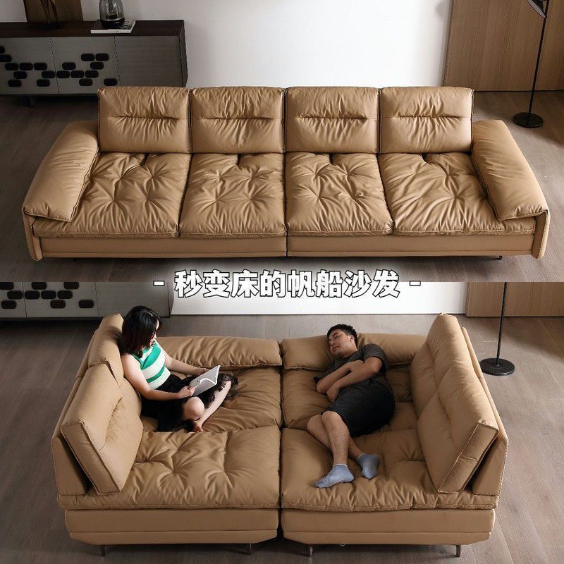 吐司沙发大帆船硅胶皮客厅宽坐深直排可调节靠背黑色网红皮艺沙发