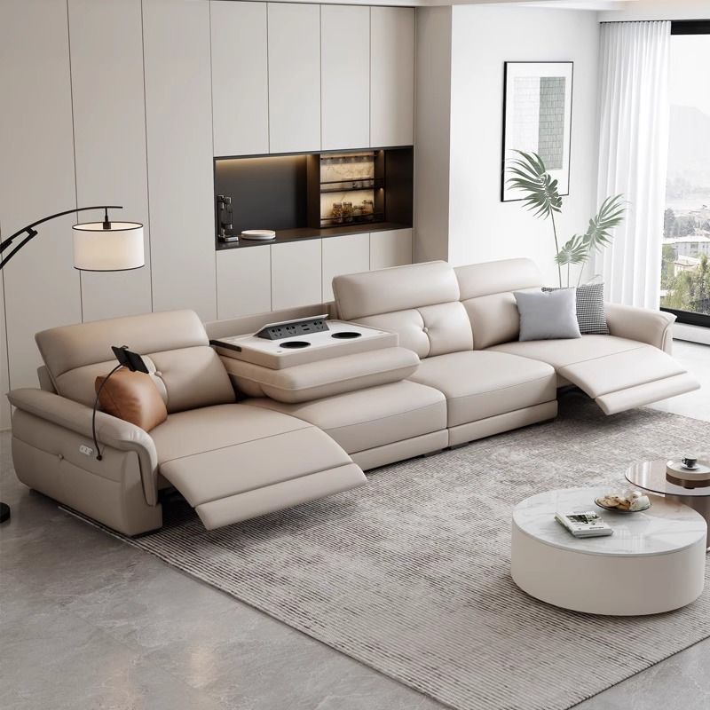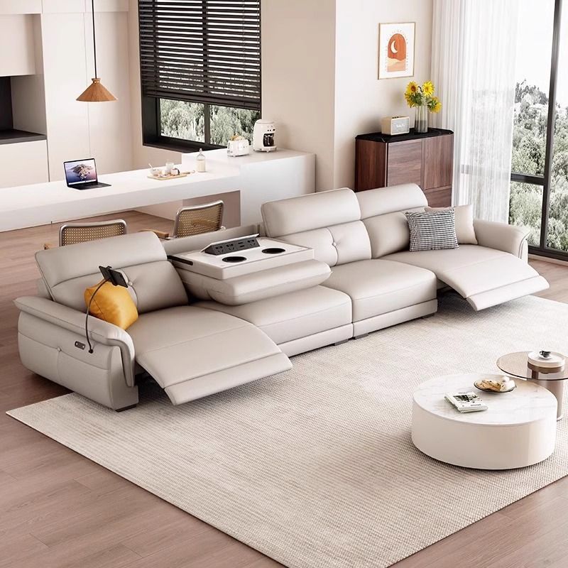 塞纳春天智能电动真皮沙发零靠墙简约现代多功能皮艺沙发抬脚直排