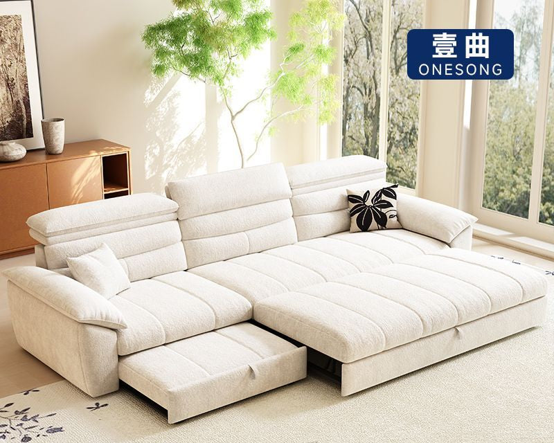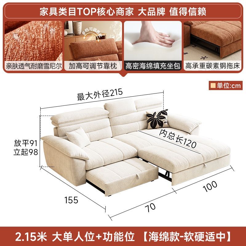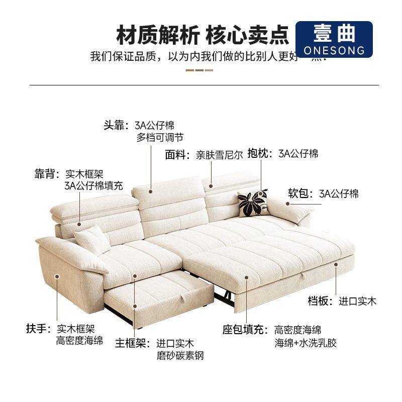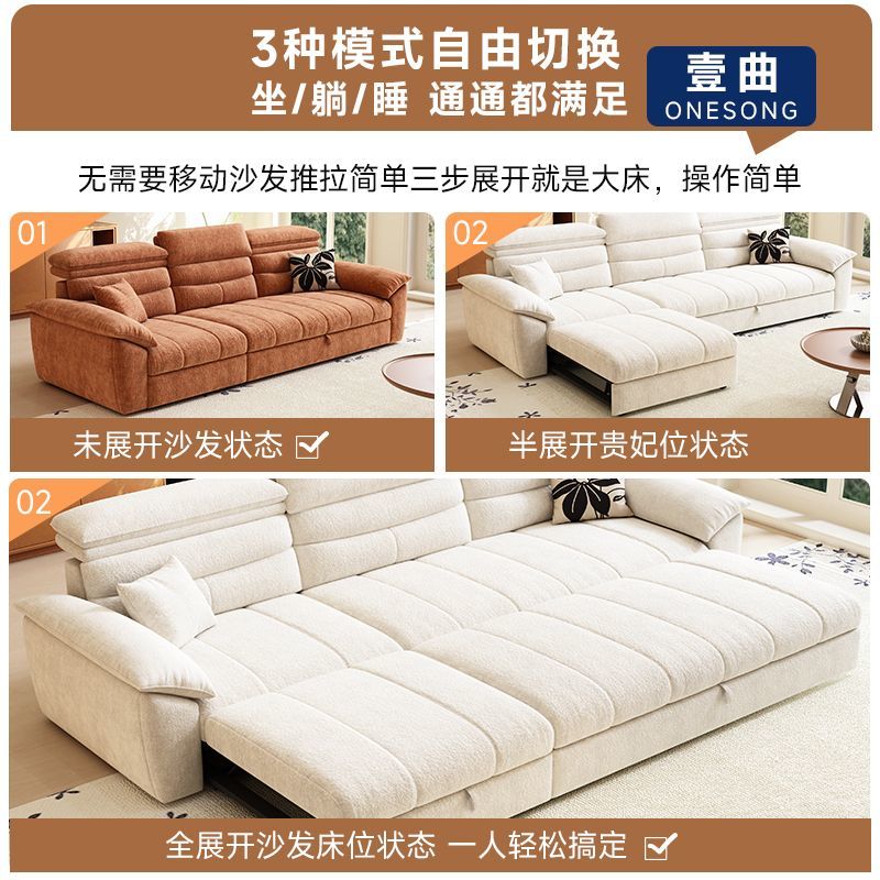 壹曲雪尼尔贵妃沙发床多功能储物小户型客厅抽拉式二合一折叠沙发