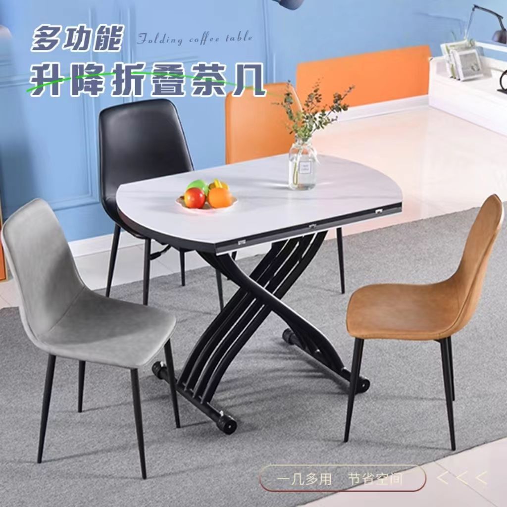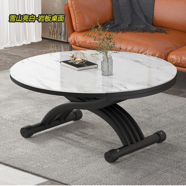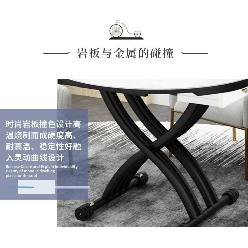 多功能升降茶几餐桌两用一体式小户型客厅圆形可移动折叠岩板家用