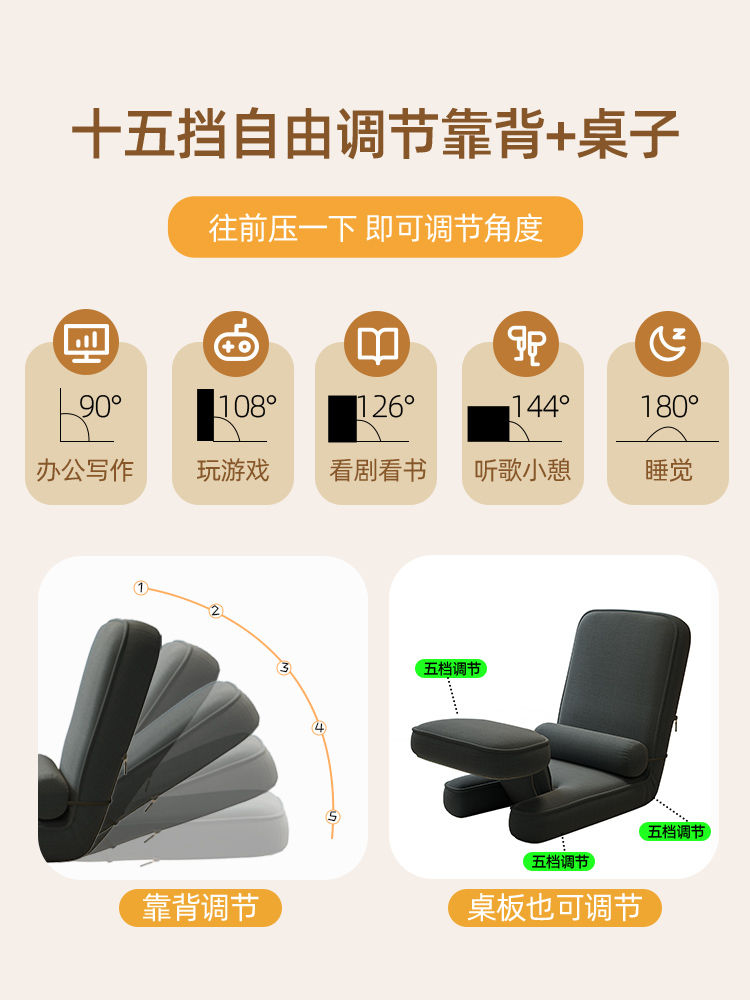多功能懒人沙发榻榻米座椅卧室折叠躺椅日式床上靠背椅子阳台座椅