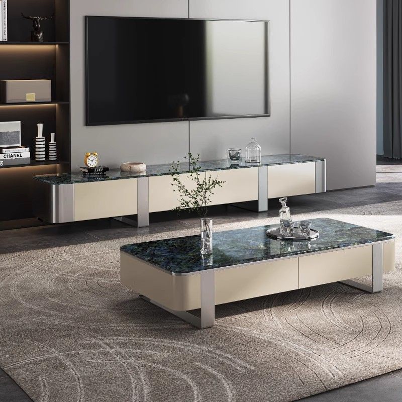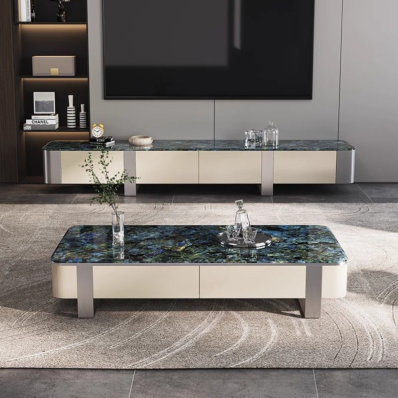 天然奢石高端大理石电视柜意式大理石地柜客厅晶石新款茶几电视柜