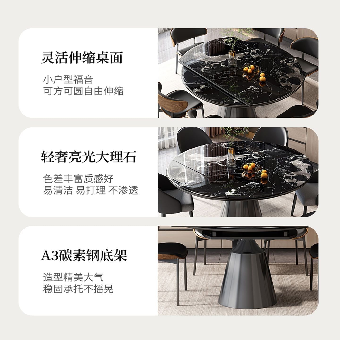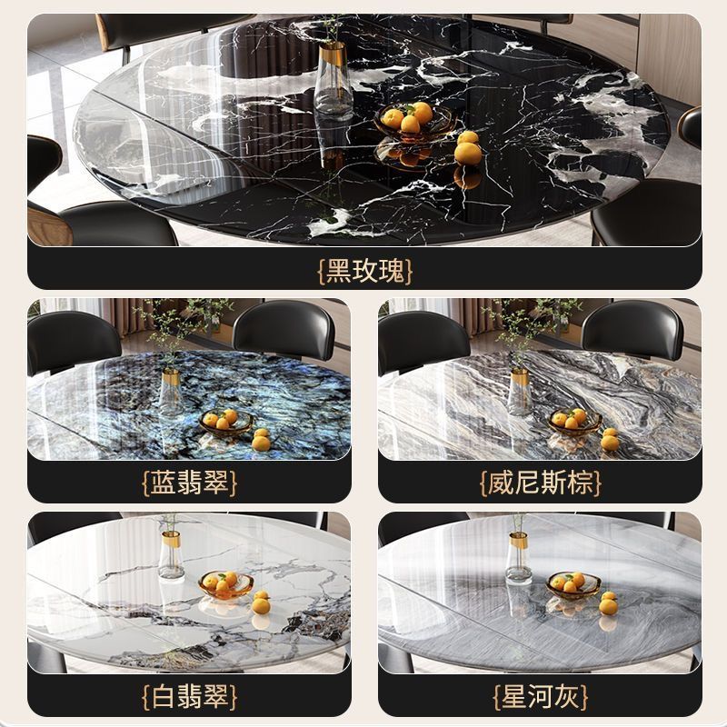 天然微晶石意式可伸缩旋转餐桌椅家用高级大理石圆餐桌轻奢高级感