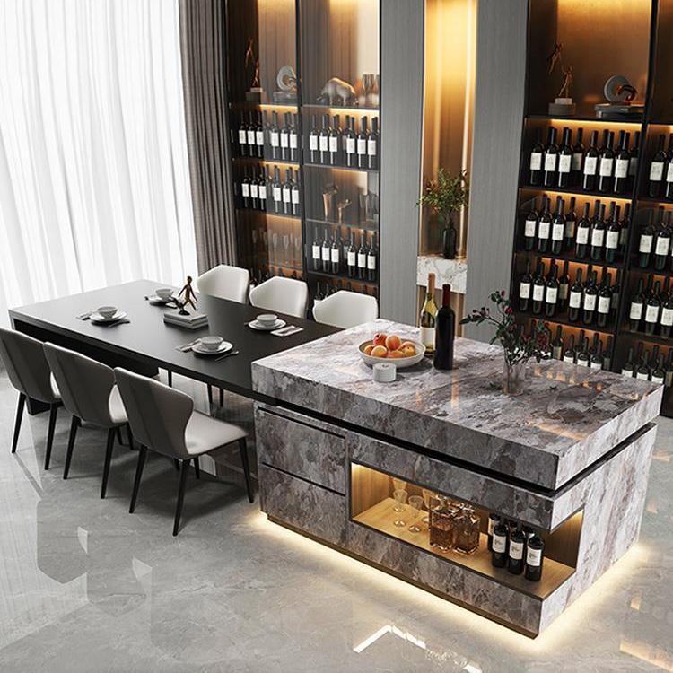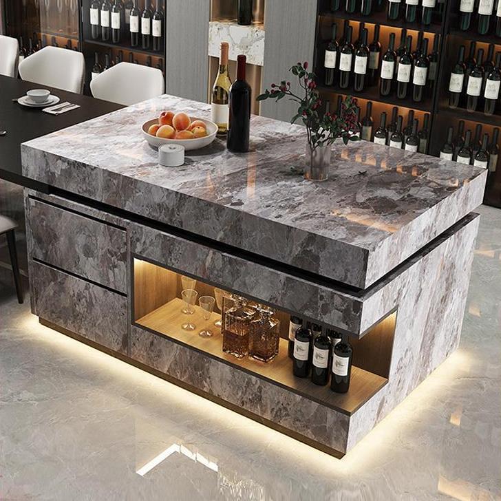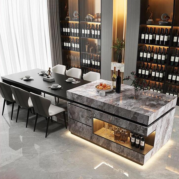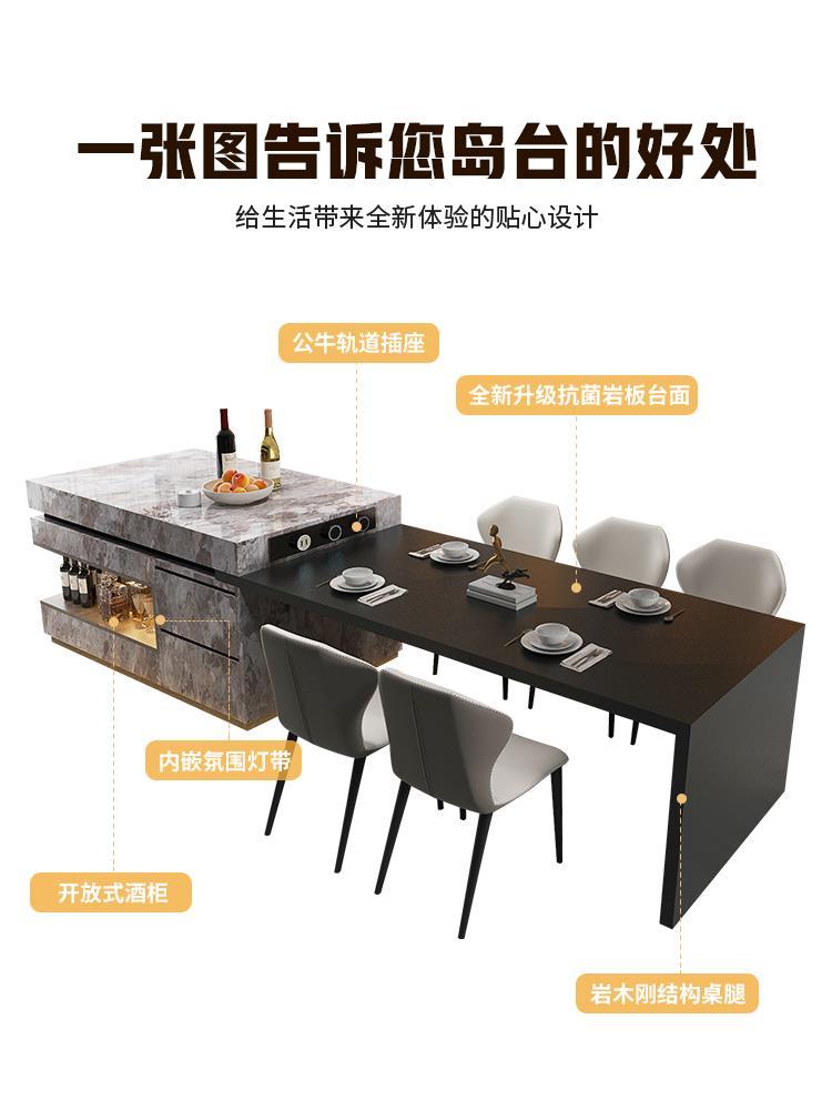 奢石岩板中岛台餐桌一体家用可伸缩轻奢高级感倒台开放式厨房导台