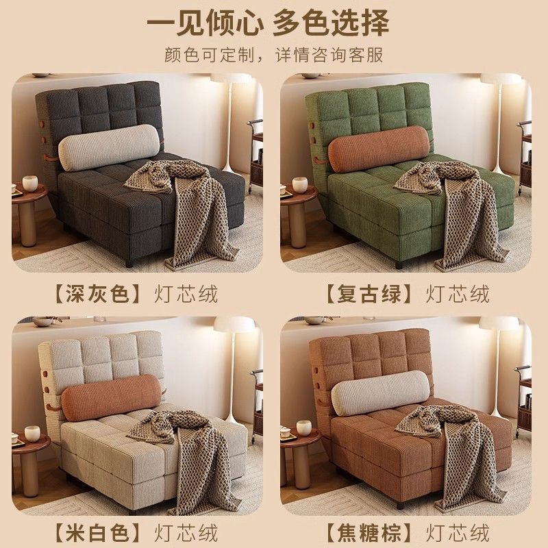 奶油复古单人可折叠沙发床小户型客厅多功能伸缩沙发床两用沙发