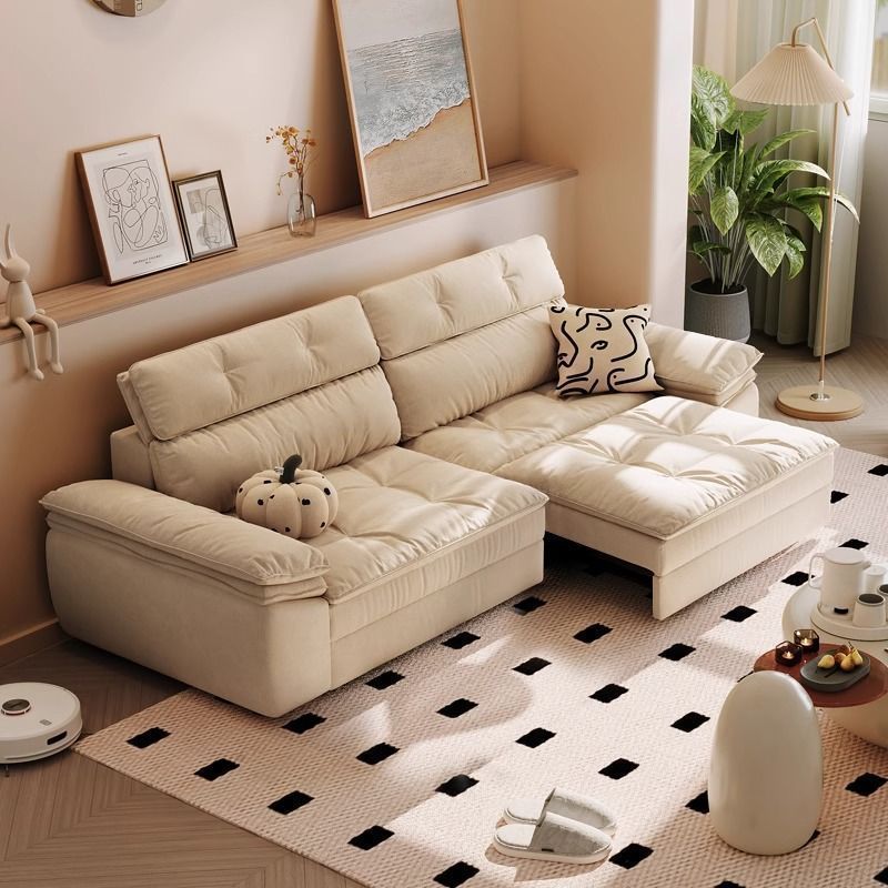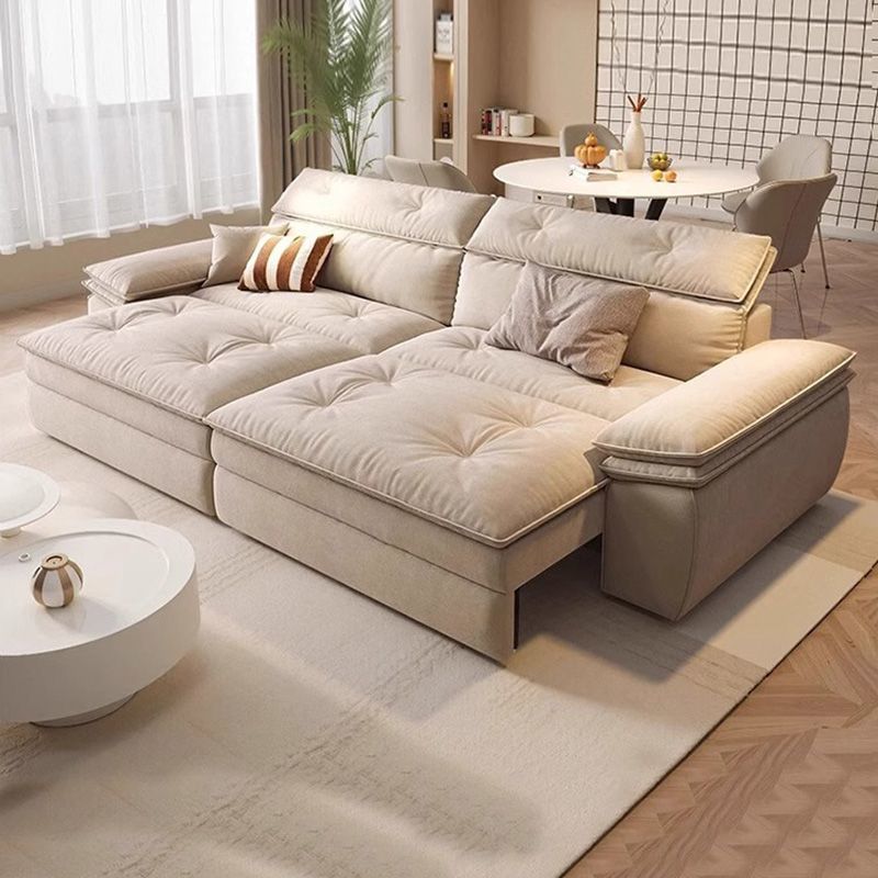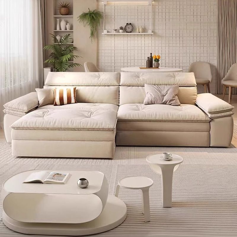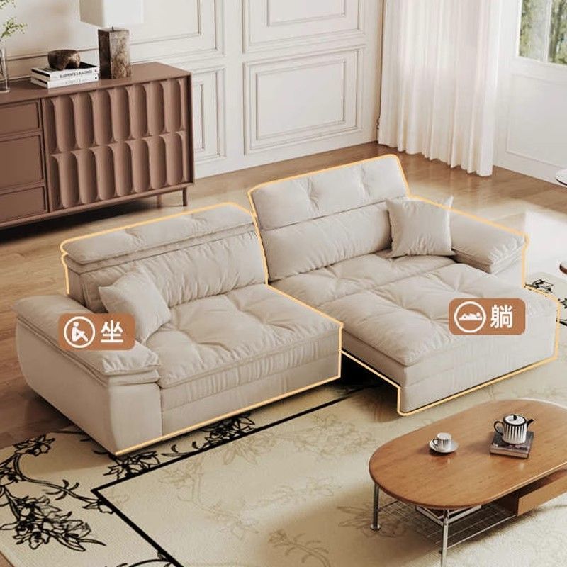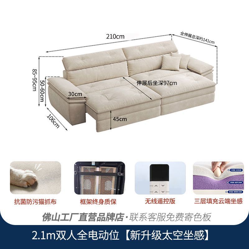 奶油风功能电动沙发客厅直排新款猫抓布语音伸缩太空头等舱沙发床