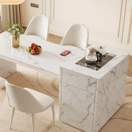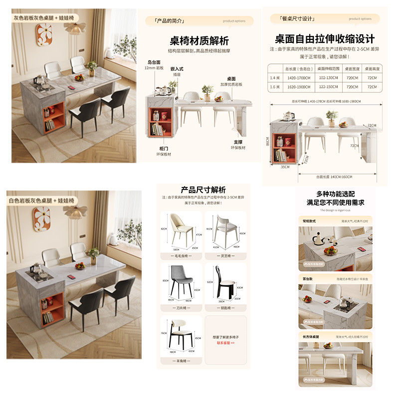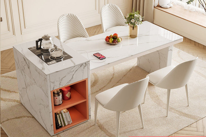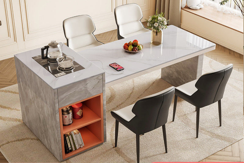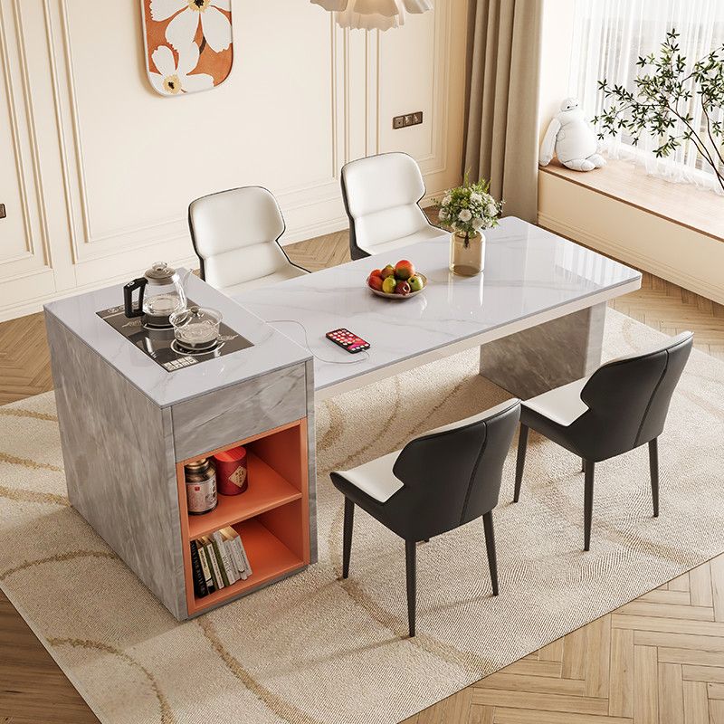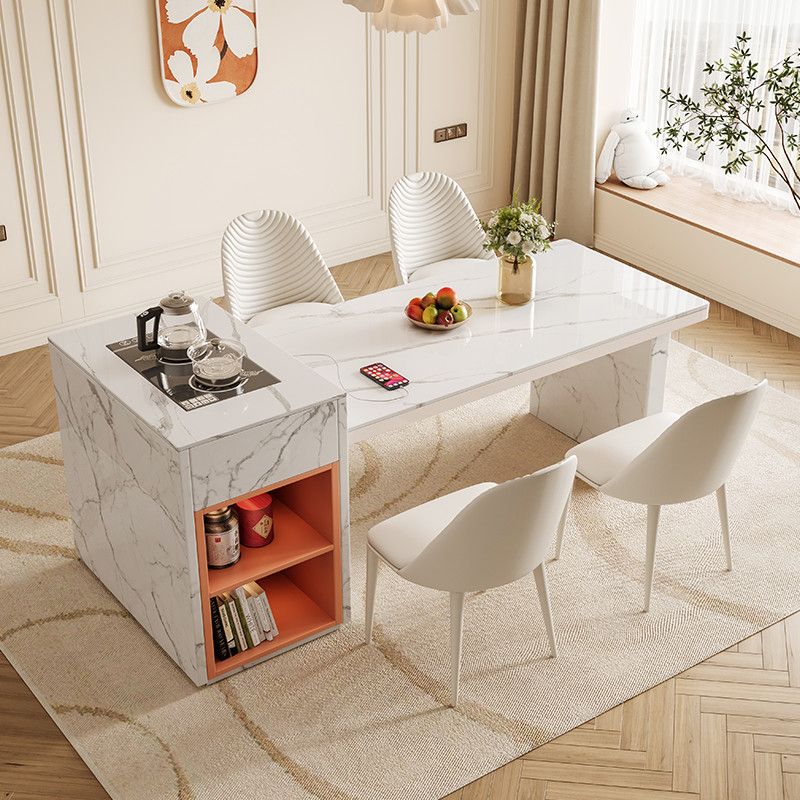 奶油风岩板岛台餐桌吧台一体定制岩板家用中导台轻奢现代多功能桌