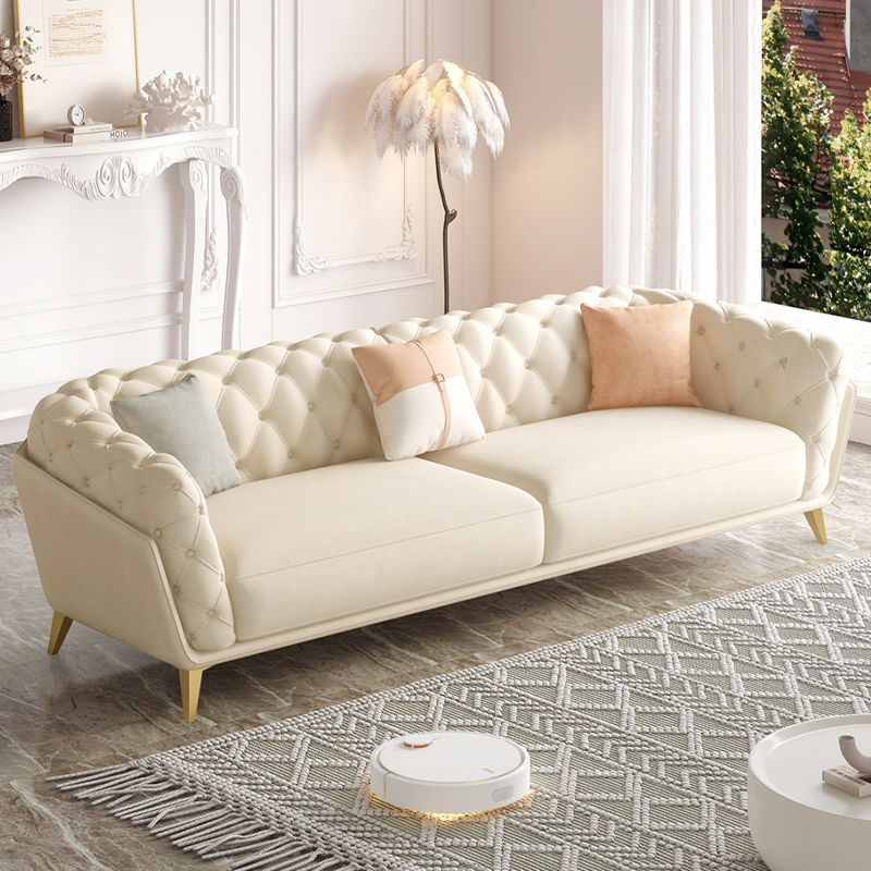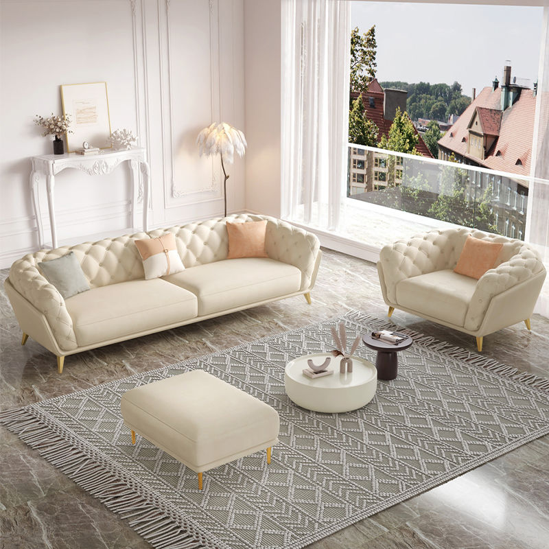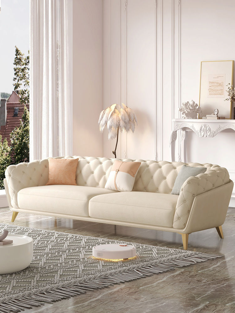 奶油风拉扣沙发轻奢布艺法式复古大小户型客厅美式简约直排肤感绒