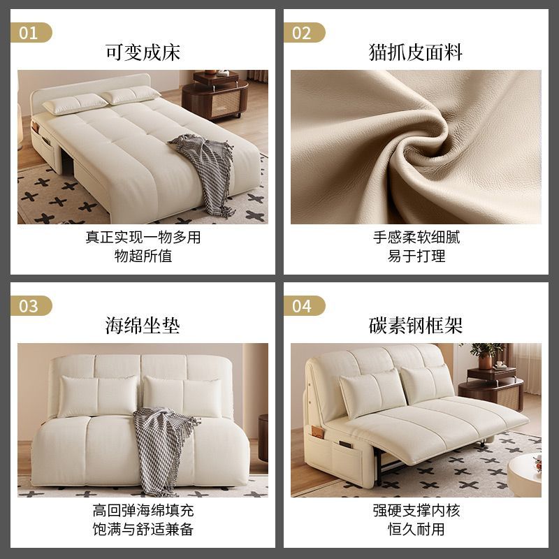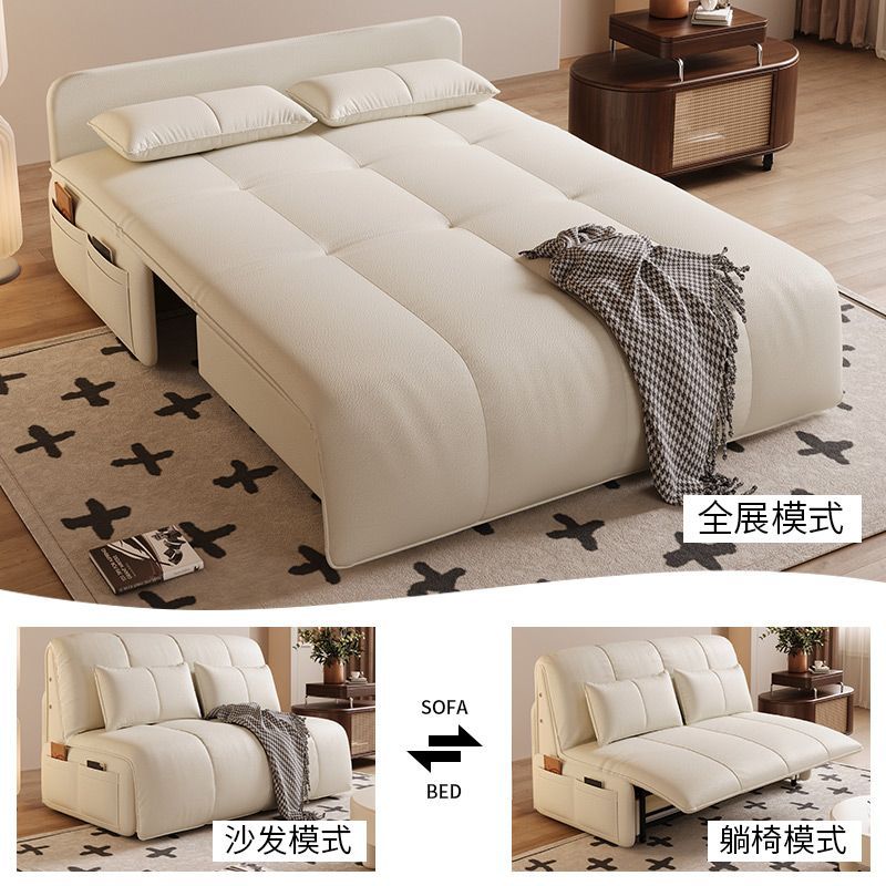 奶油风智能电动沙发床折叠两用网红款多功能单双人小户型客厅沙发