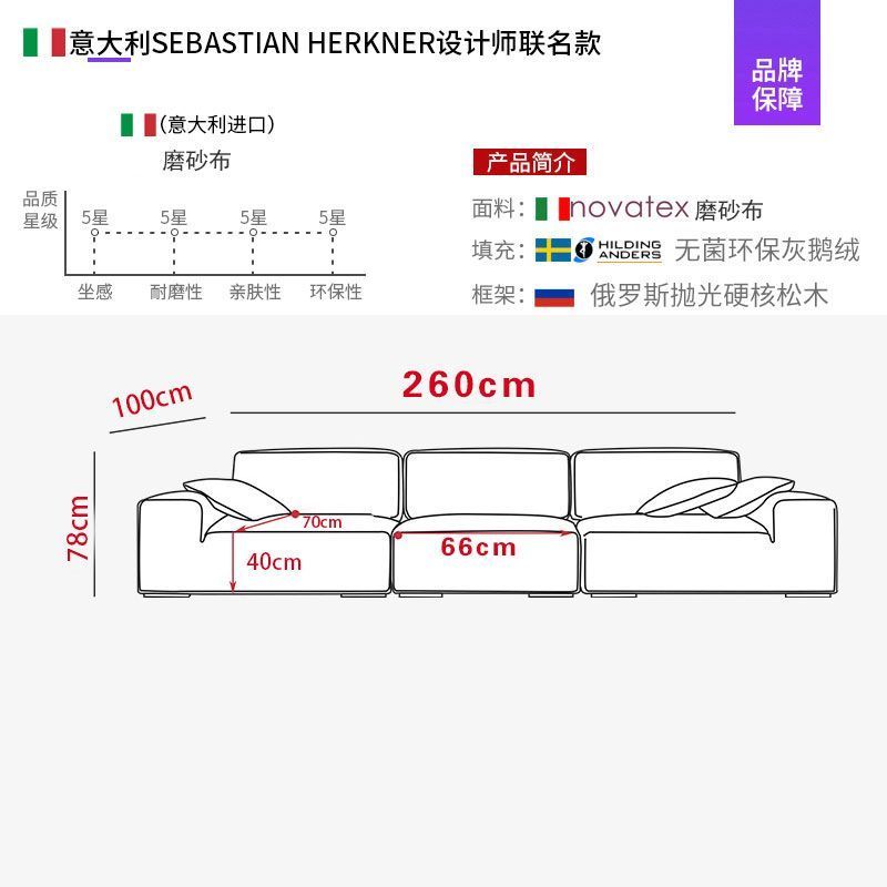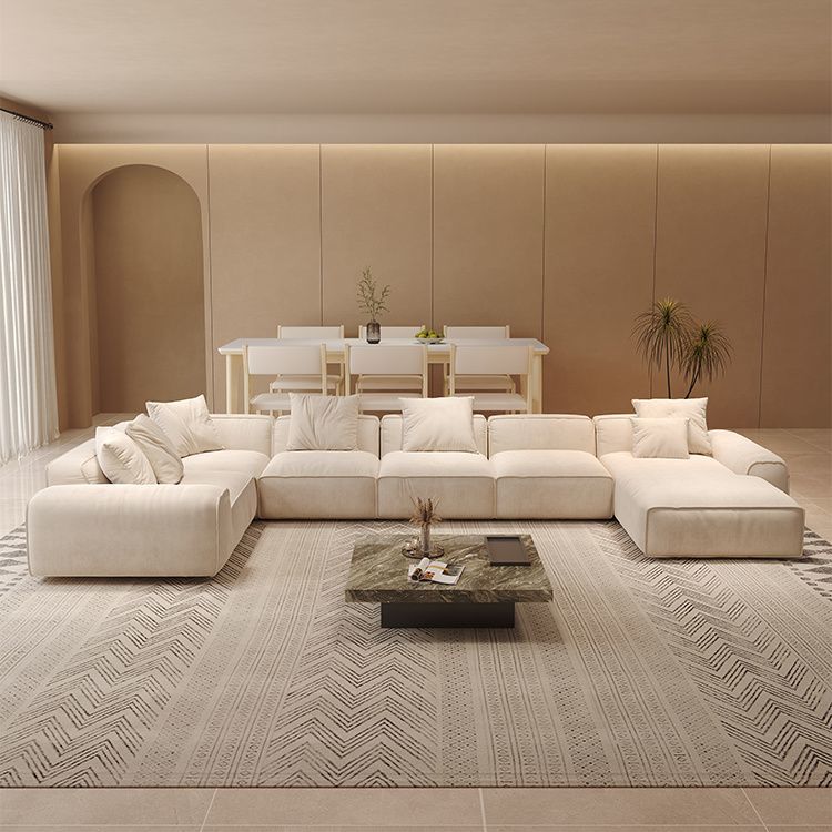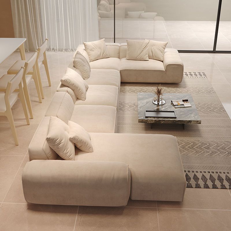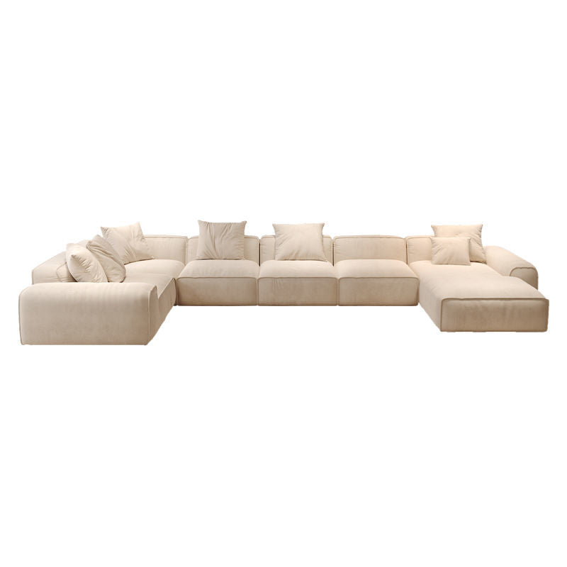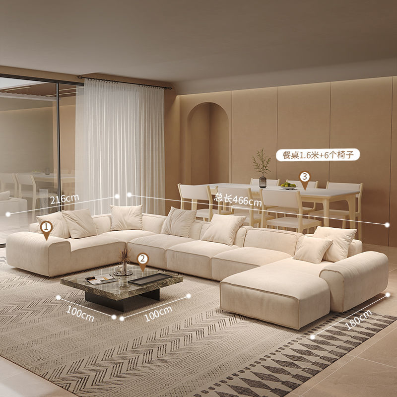 奶油风磨砂绒布转角户型沙发茶几大黑牛直排贵妃组合客厅成套家具