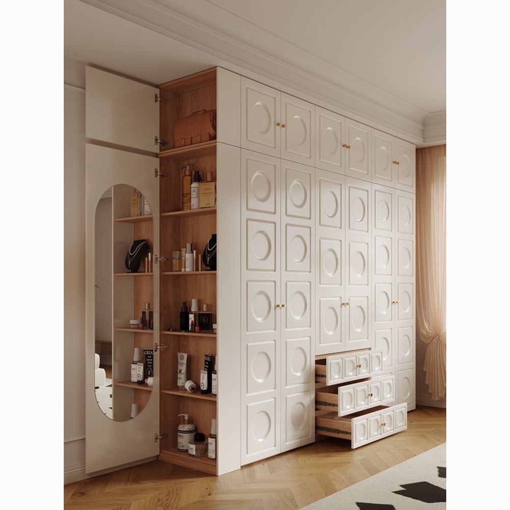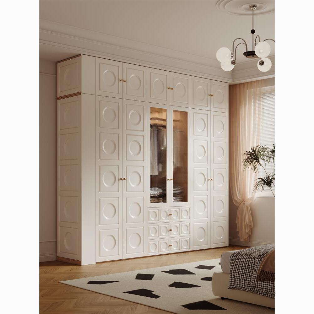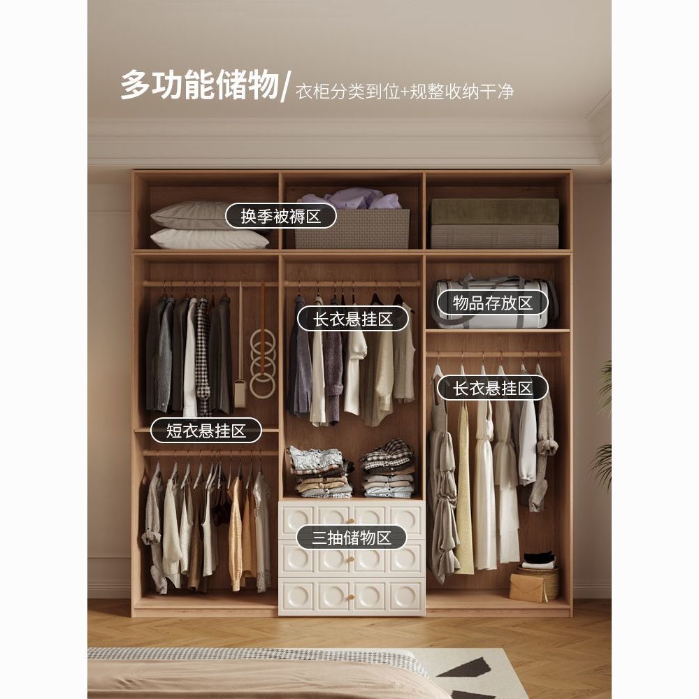 奶油风衣柜梳妆台一体组合法式小户型家用卧室储物柜成品收纳衣橱