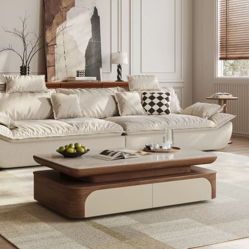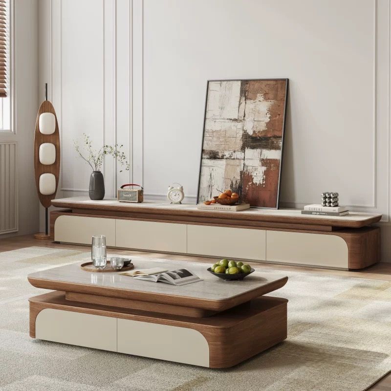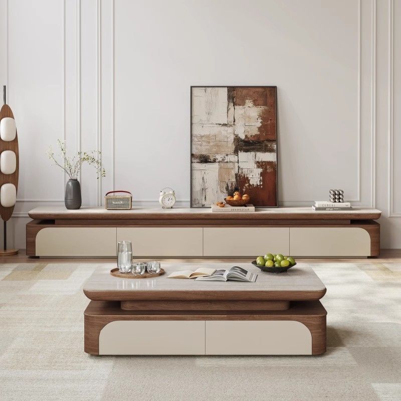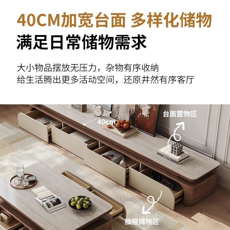 宝邑丽舍岩板茶几奶油中古风电视柜组合客厅现代简约落地储物柜