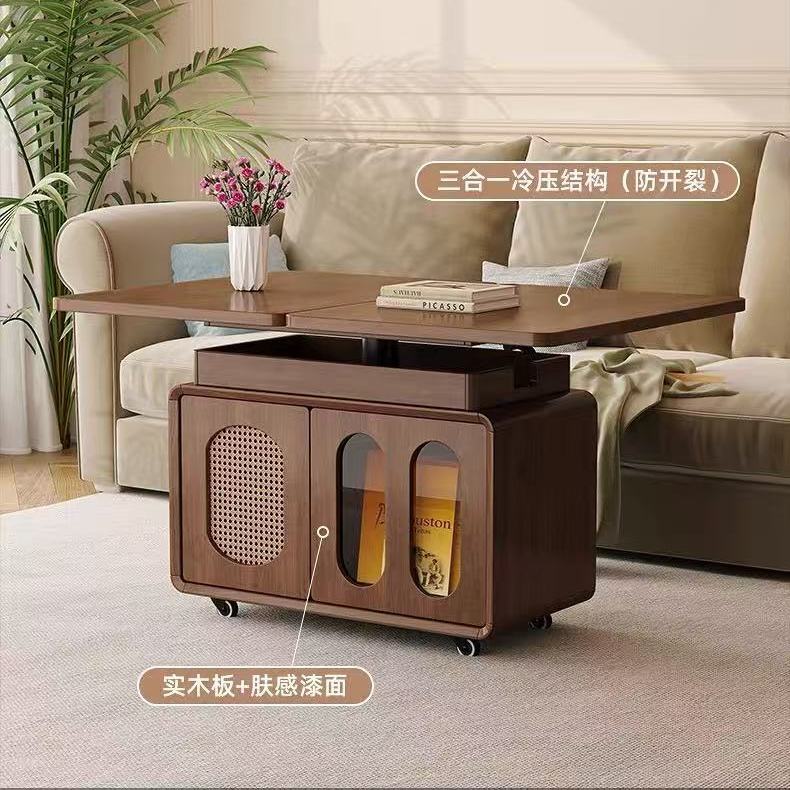 实木可升降茶几移动小推车家用客厅多功能茶桌折叠餐桌沙发边几