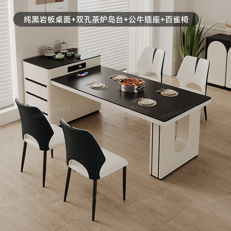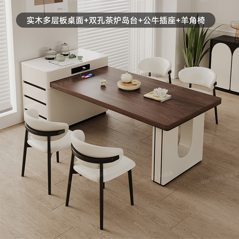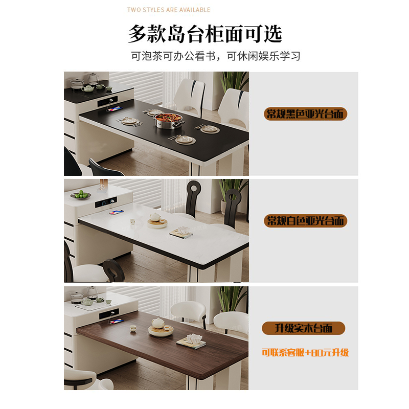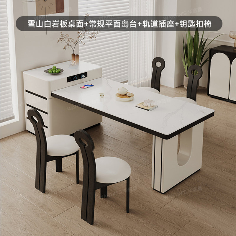 实木岛台餐桌简约一体伸缩岩板现代高端小户型家用餐厅吃饭桌子