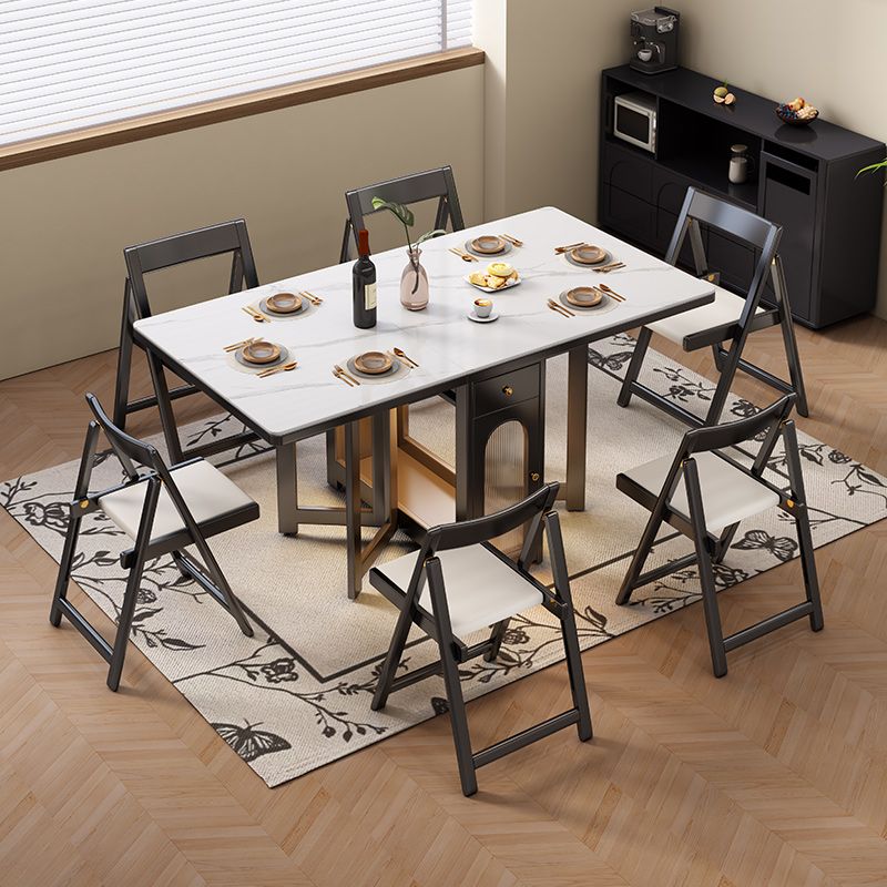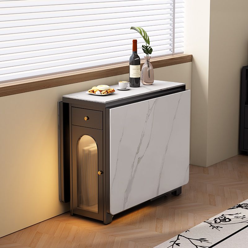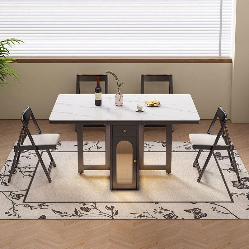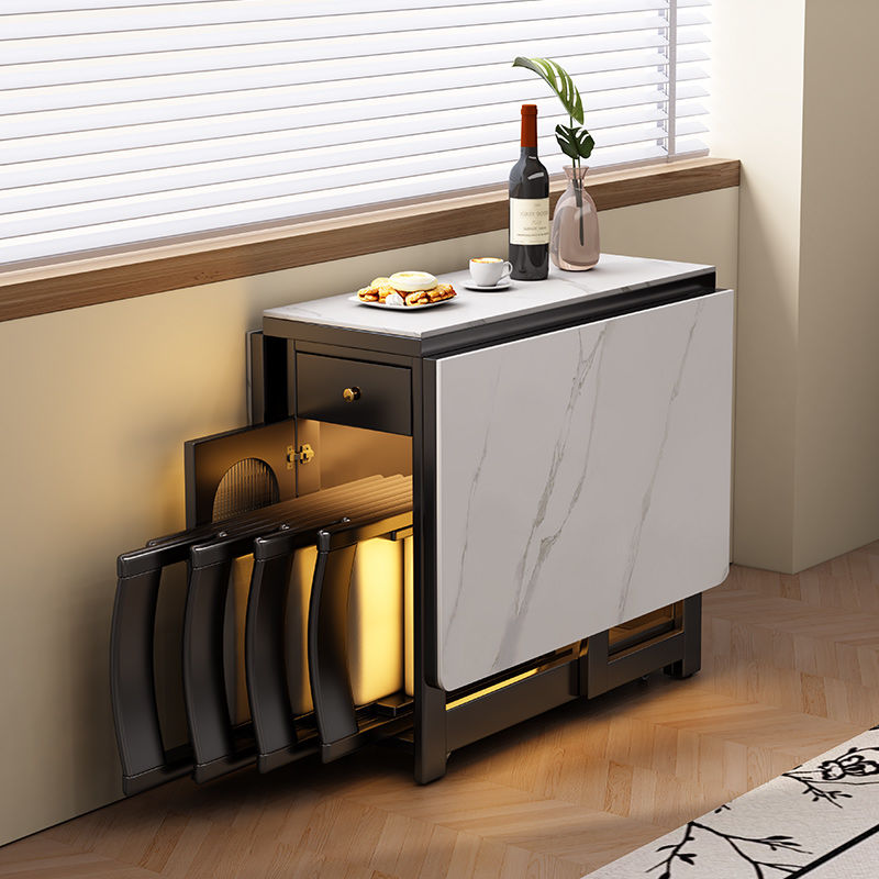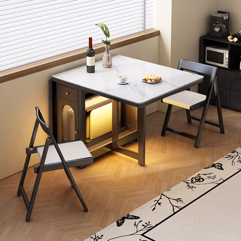 实木岩板折叠餐桌复古隐藏式餐桌中古风小户型多功能家用隐形饭桌