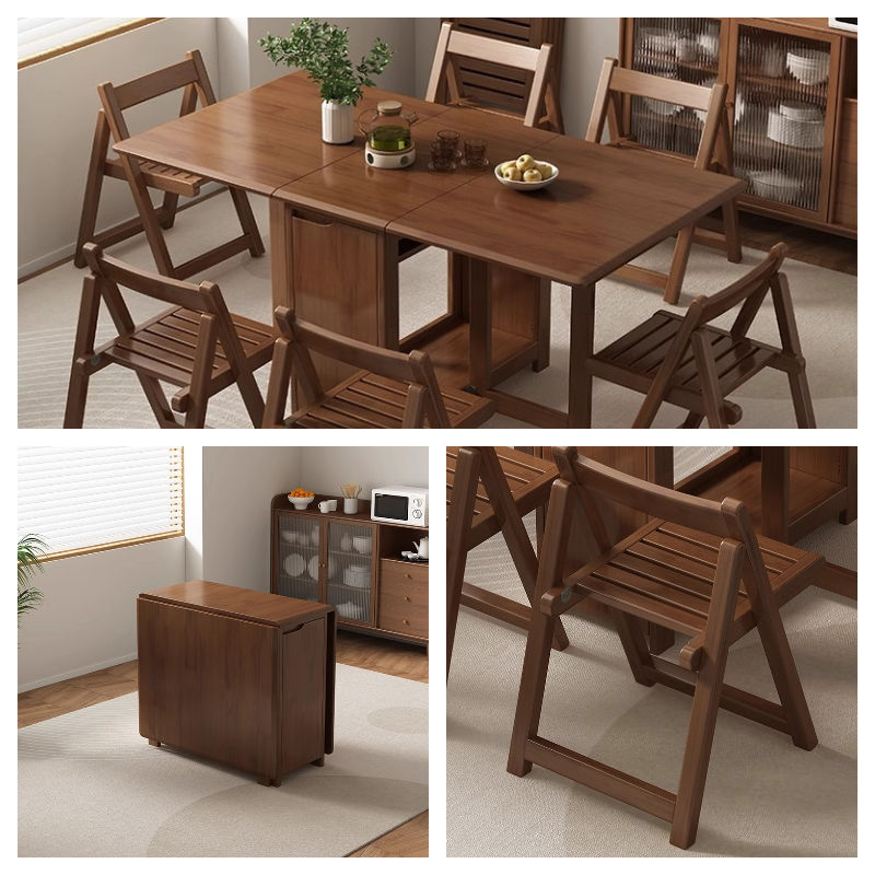 实木折叠餐桌家用小户型饭桌长方形简约伸缩餐桌椅现代折叠桌桌子