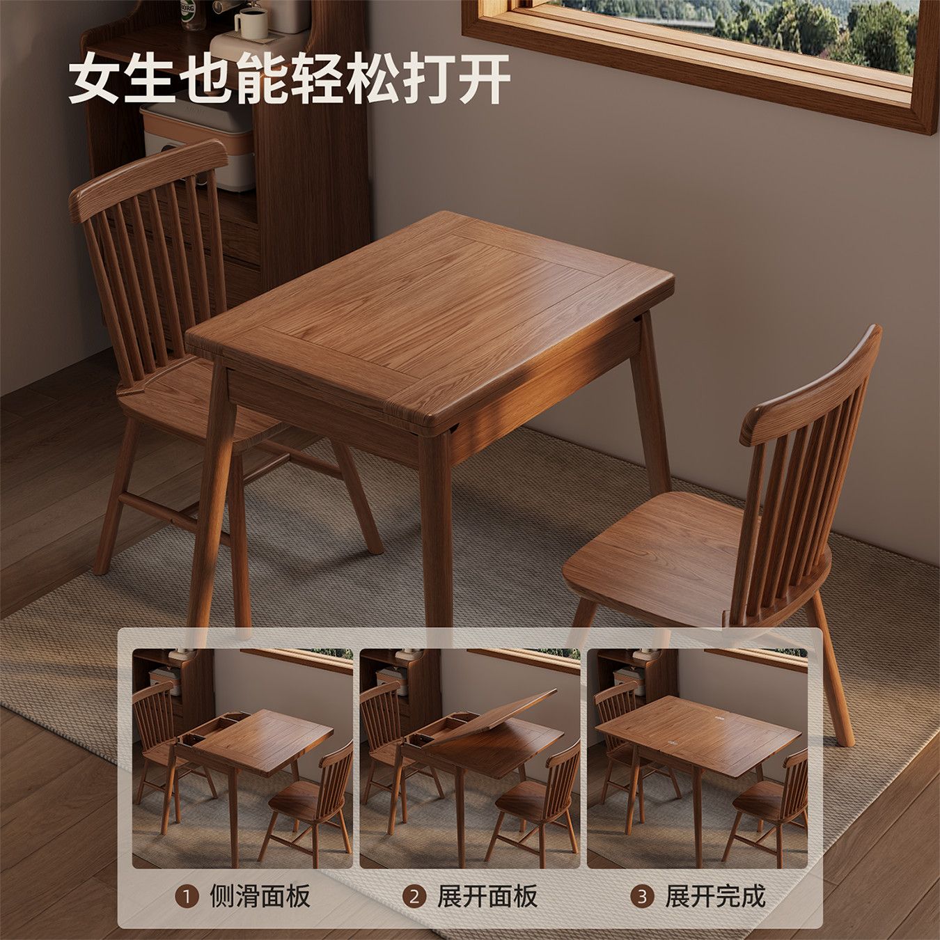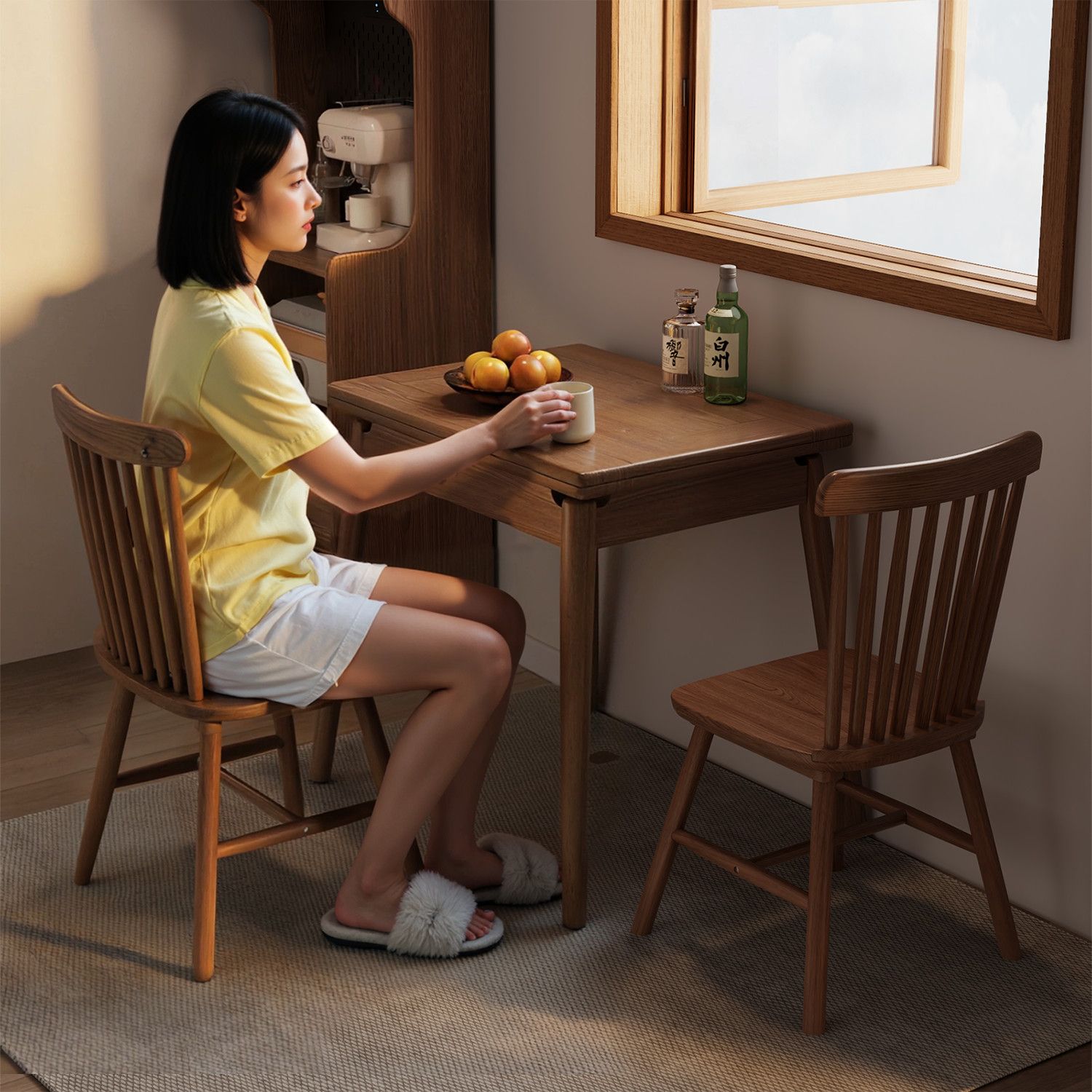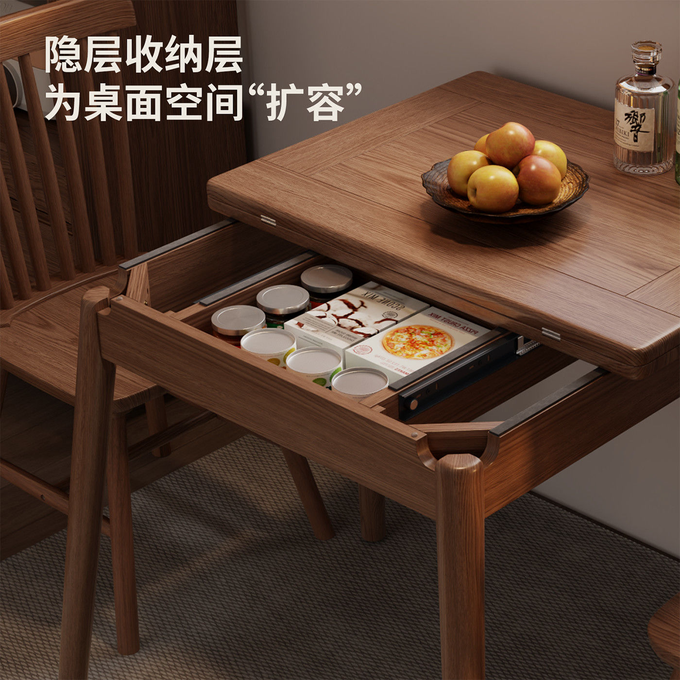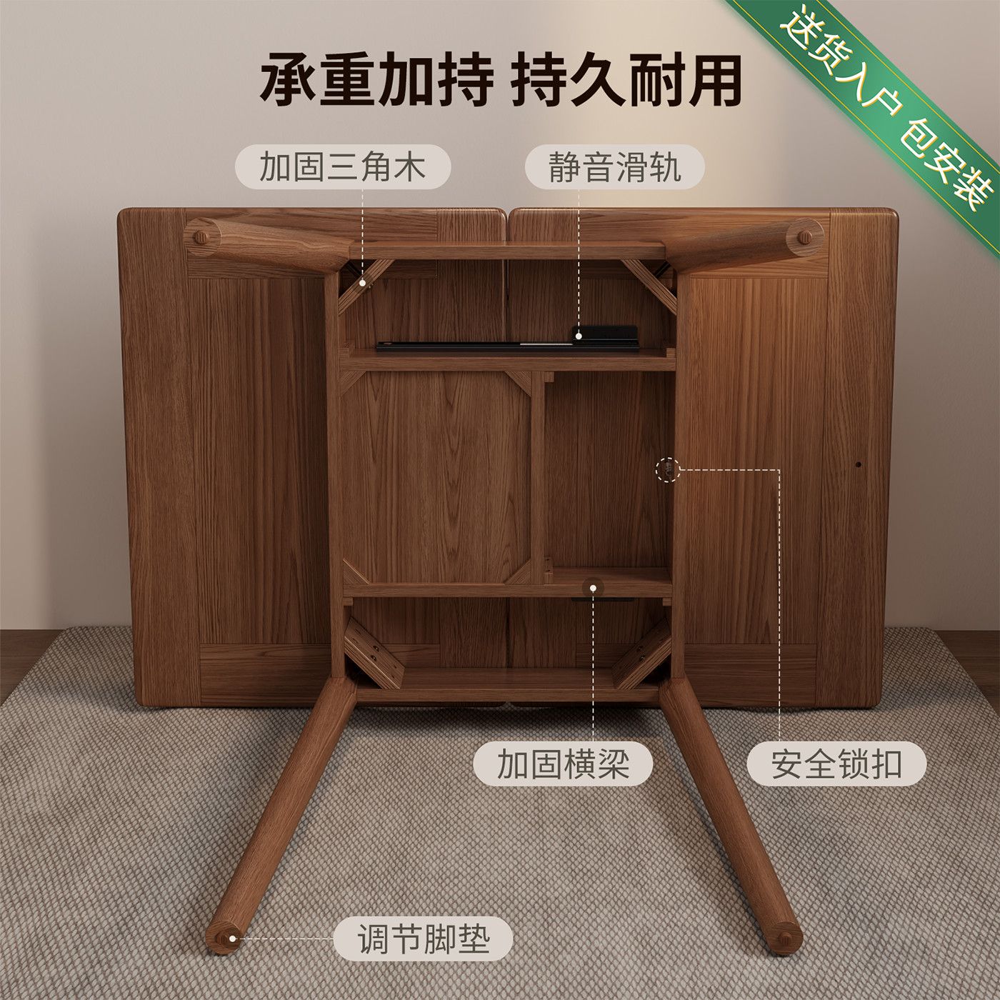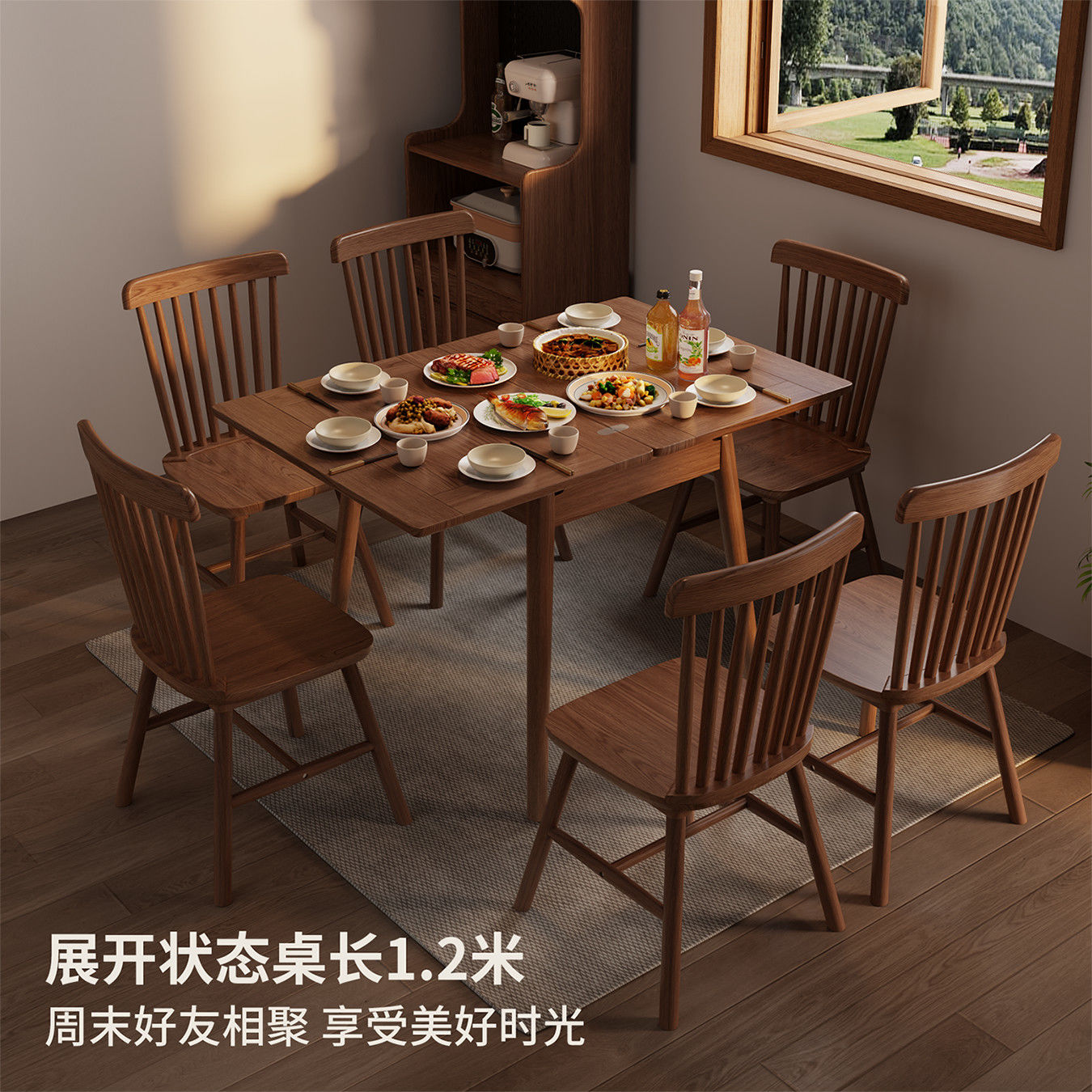实木折叠餐桌餐边柜饭桌家用新中式简约小方桌小户型餐桌椅组合