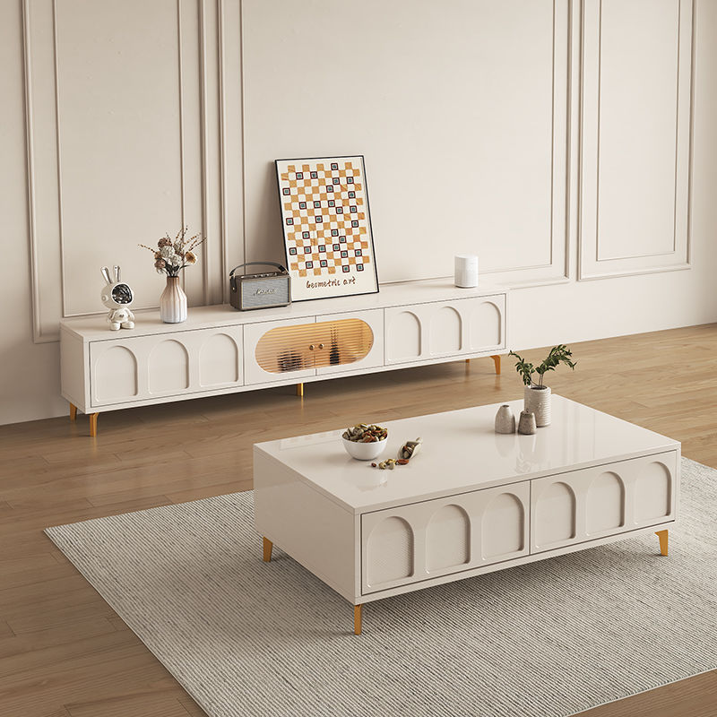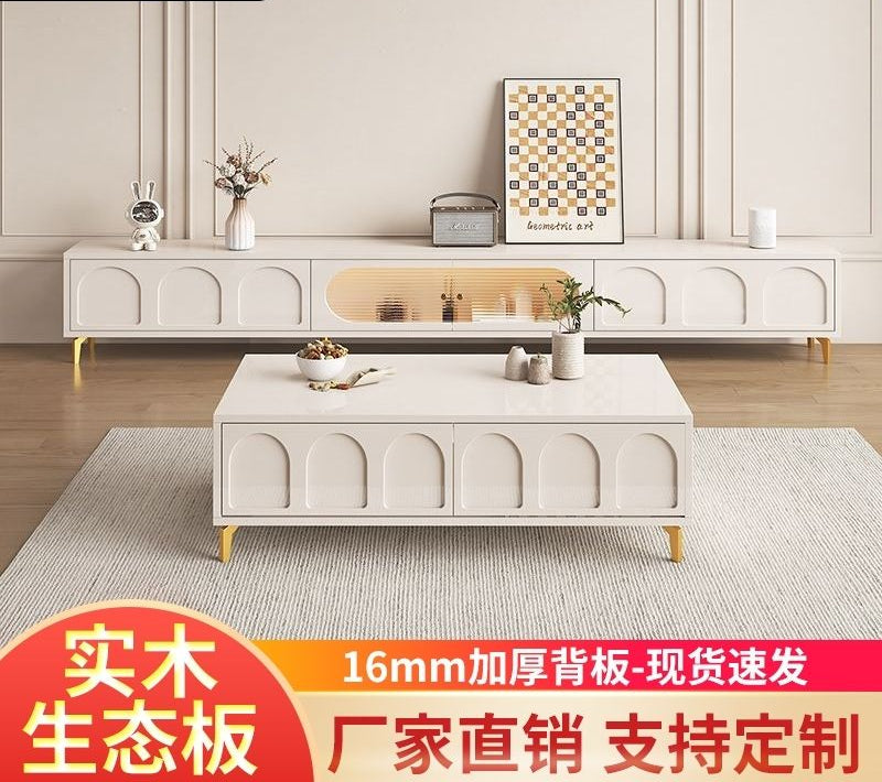 实木电视柜茶几组合小户型家用电视柜客厅奶油风茶几带抽屉包安装