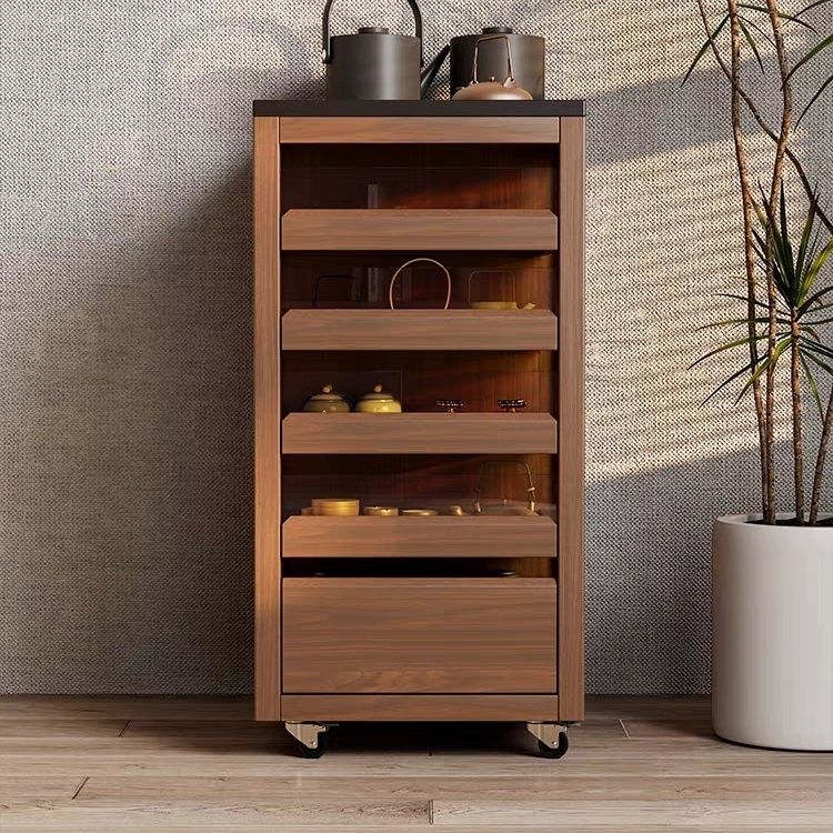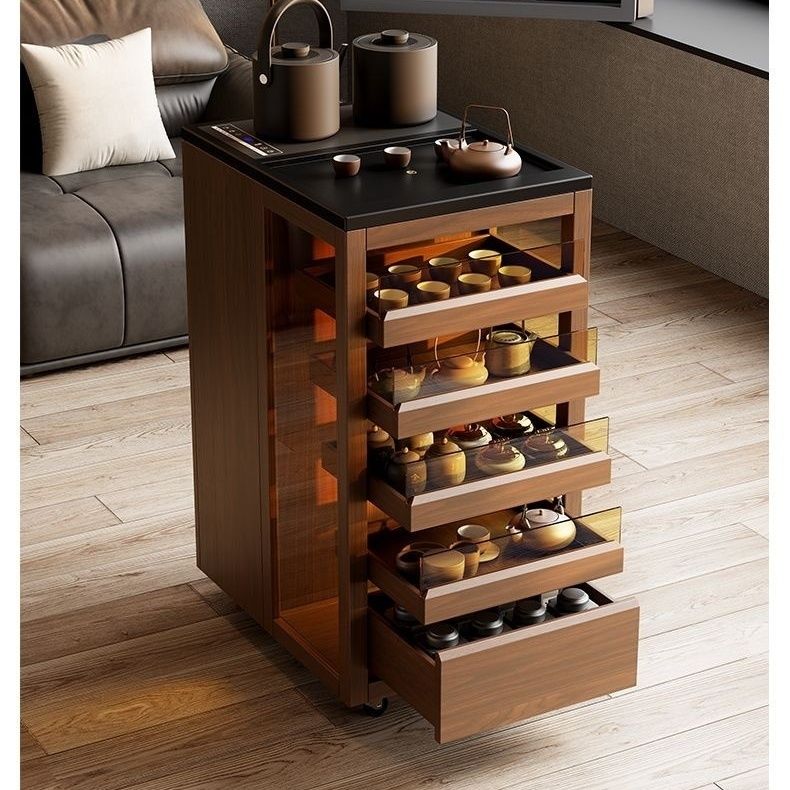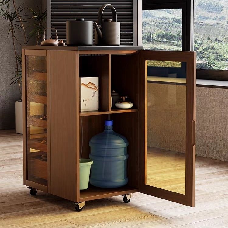 实木移动可煮茶小茶台可收纳有机玻璃茶水柜移动小边柜茶台置物架