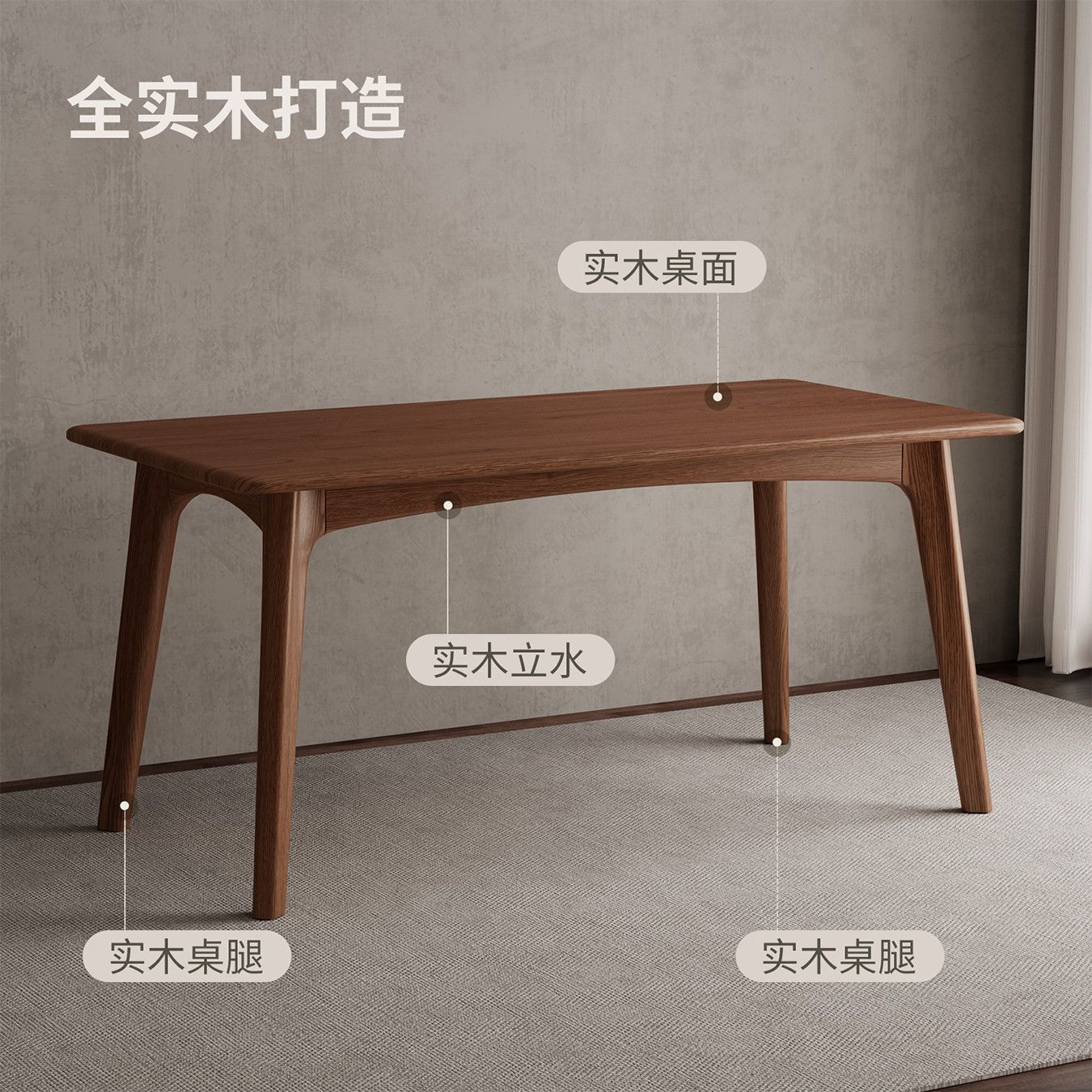 实木餐桌长方形吃饭桌子家用纯实木饭桌新中式饭桌子实木餐桌