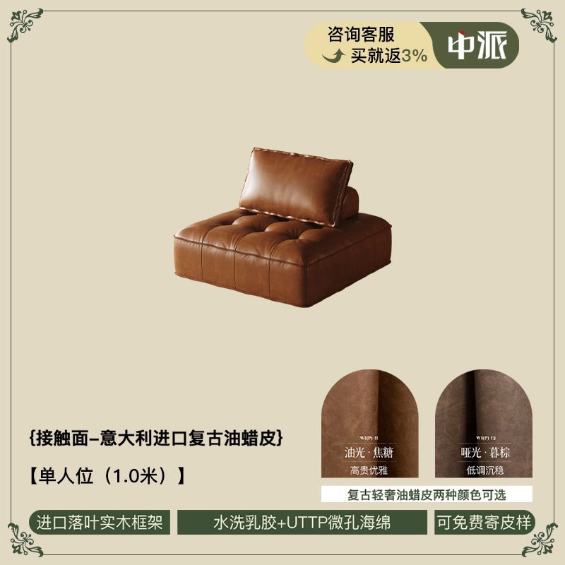 客厅小户型豆腐块真皮方块复古极简沙发皮埃蒙特组合模块真皮沙发