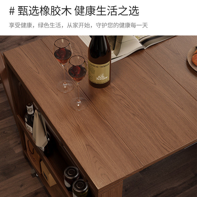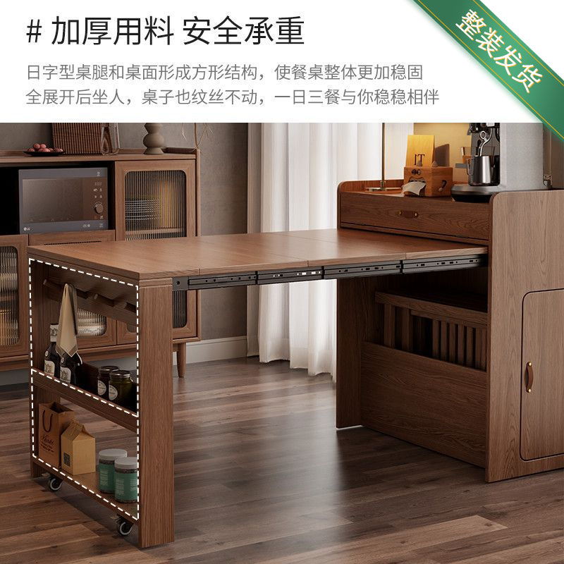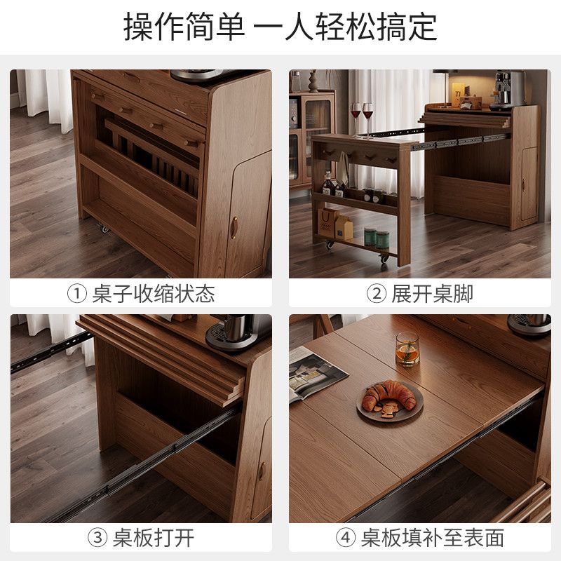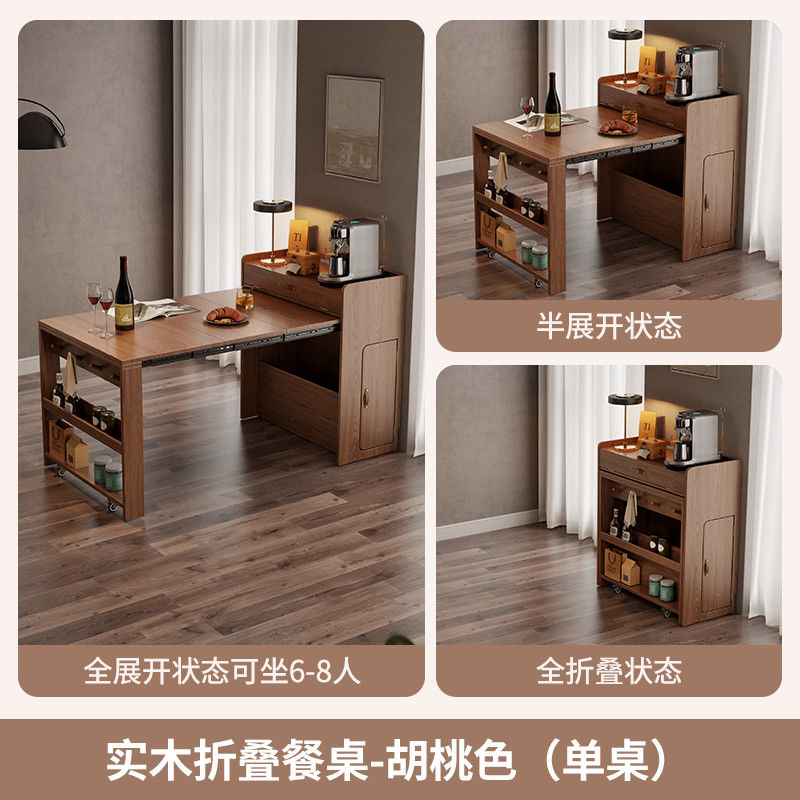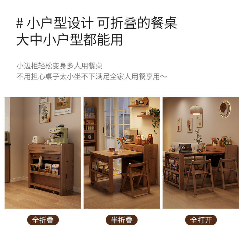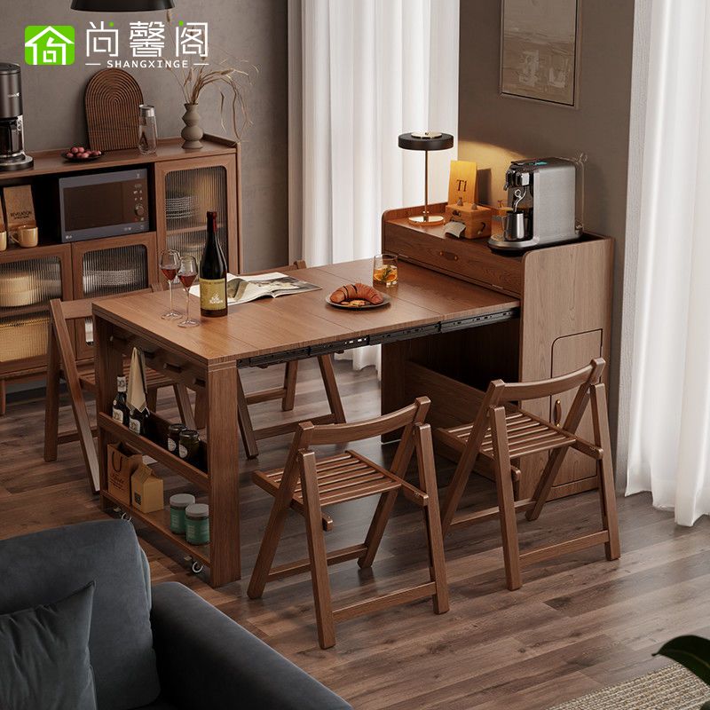 尚馨阁实木折叠餐桌餐边柜一体家用小户型可伸缩餐桌椅隐形饭桌