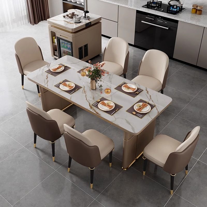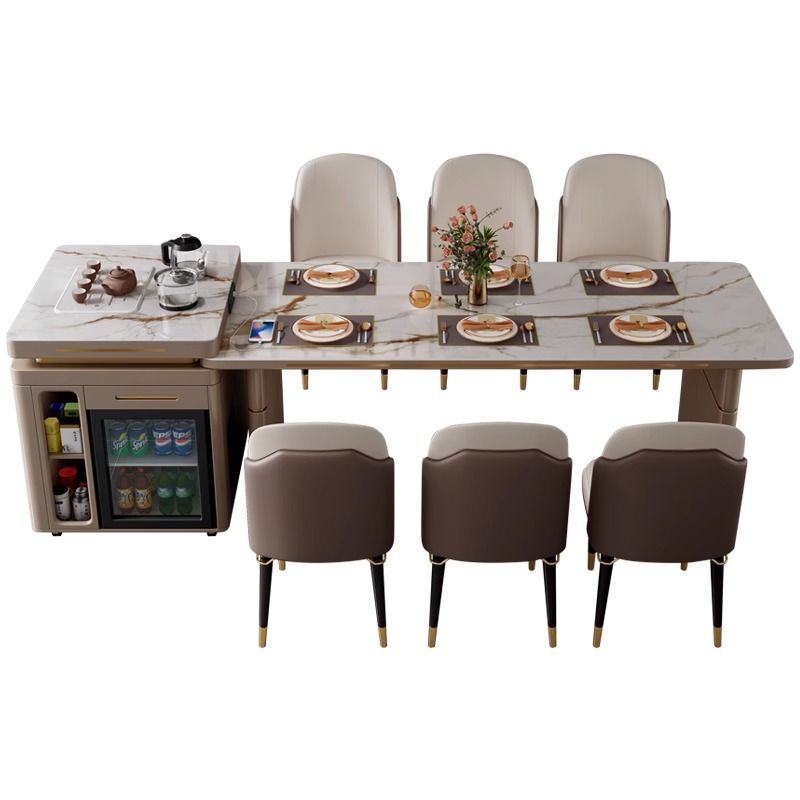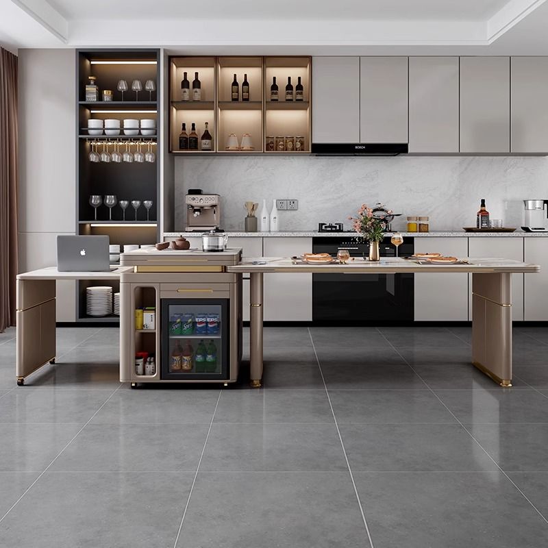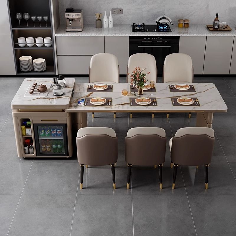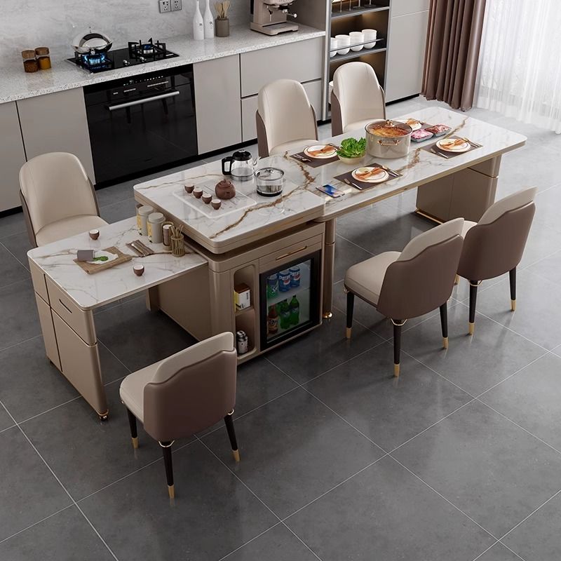 岛台餐桌一体轻奢岩板旋转伸缩冰箱多功能家用现代简约餐桌椅组合