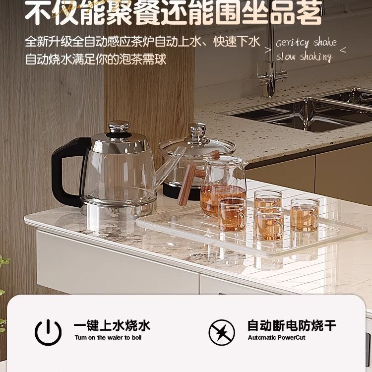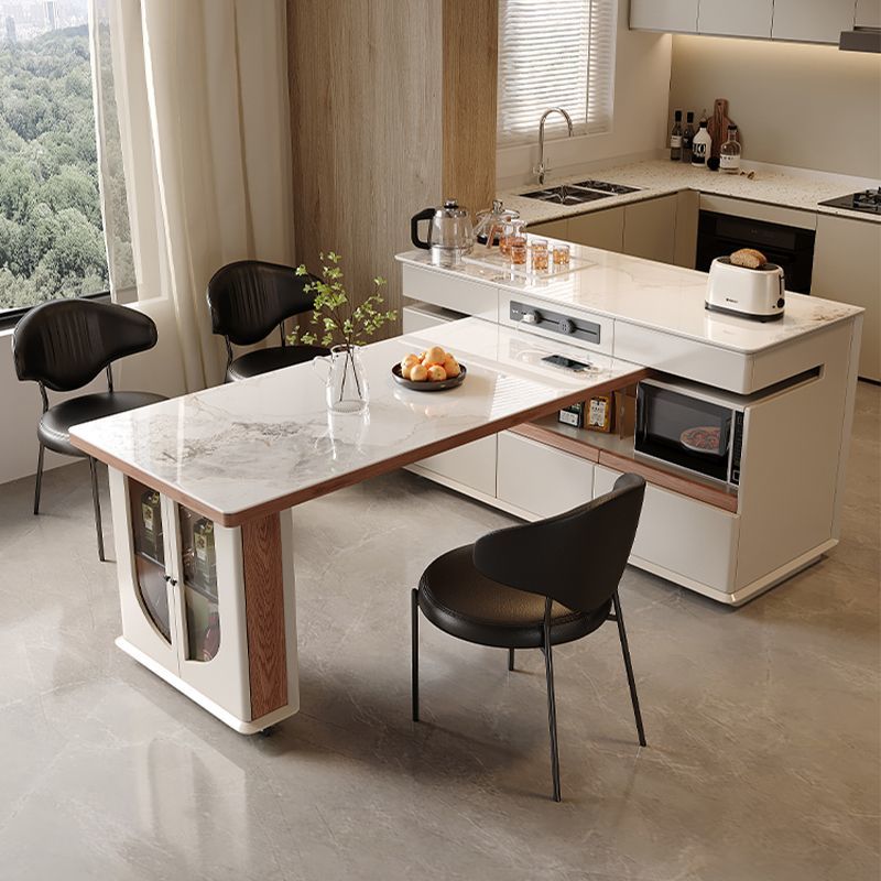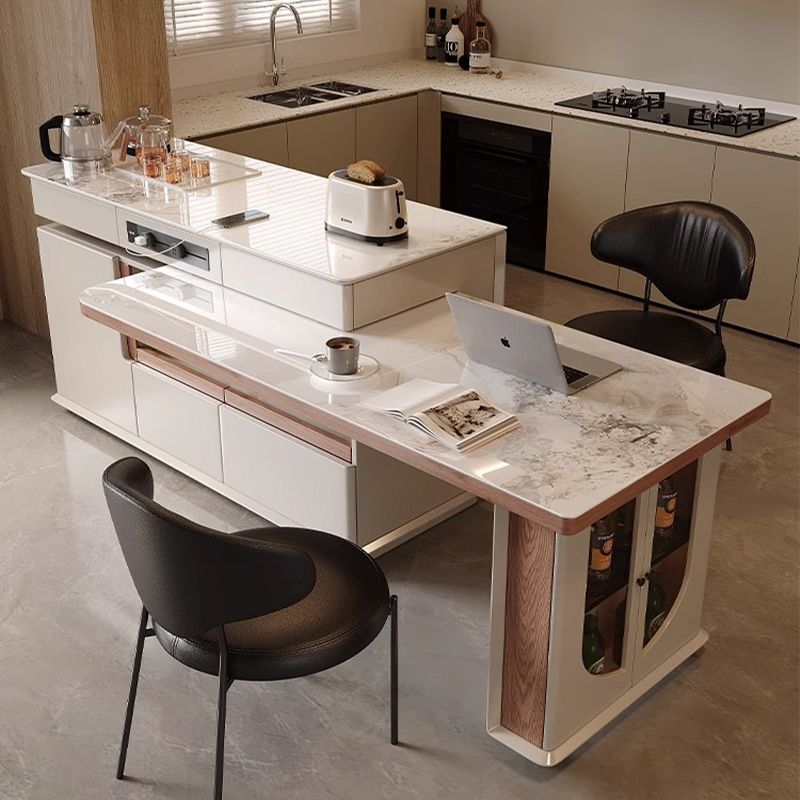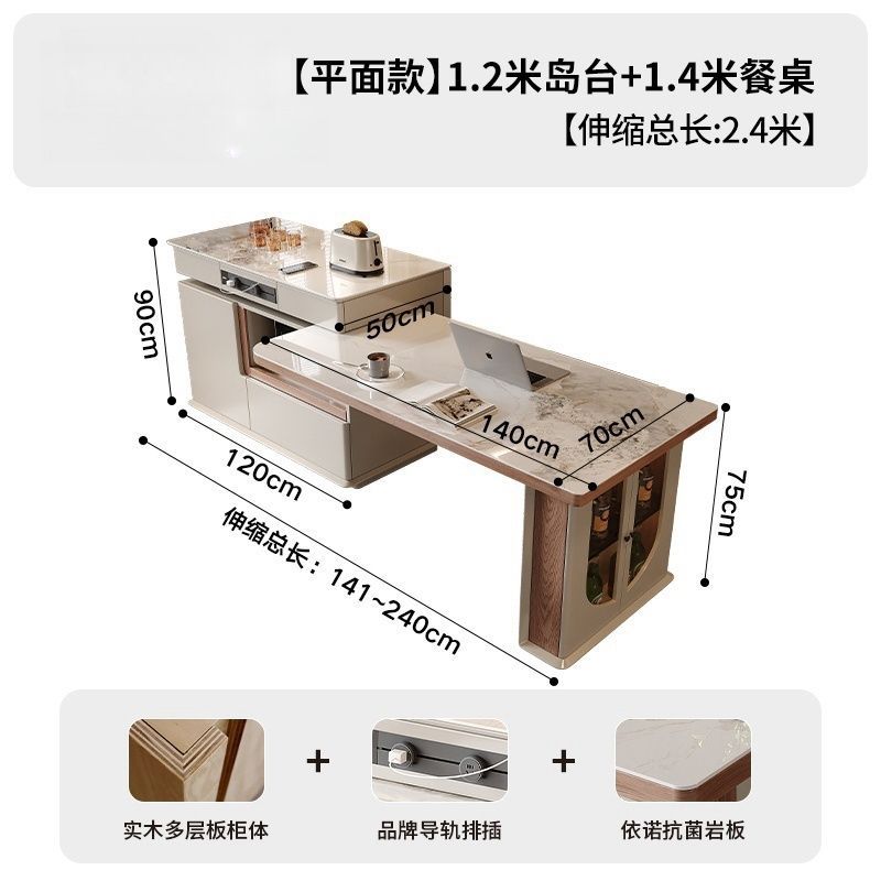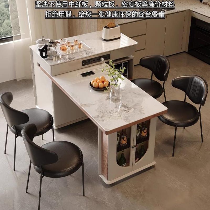岩板岛台餐桌一体可旋转伸缩现代简约多功能家用奶油风转角吧台桌