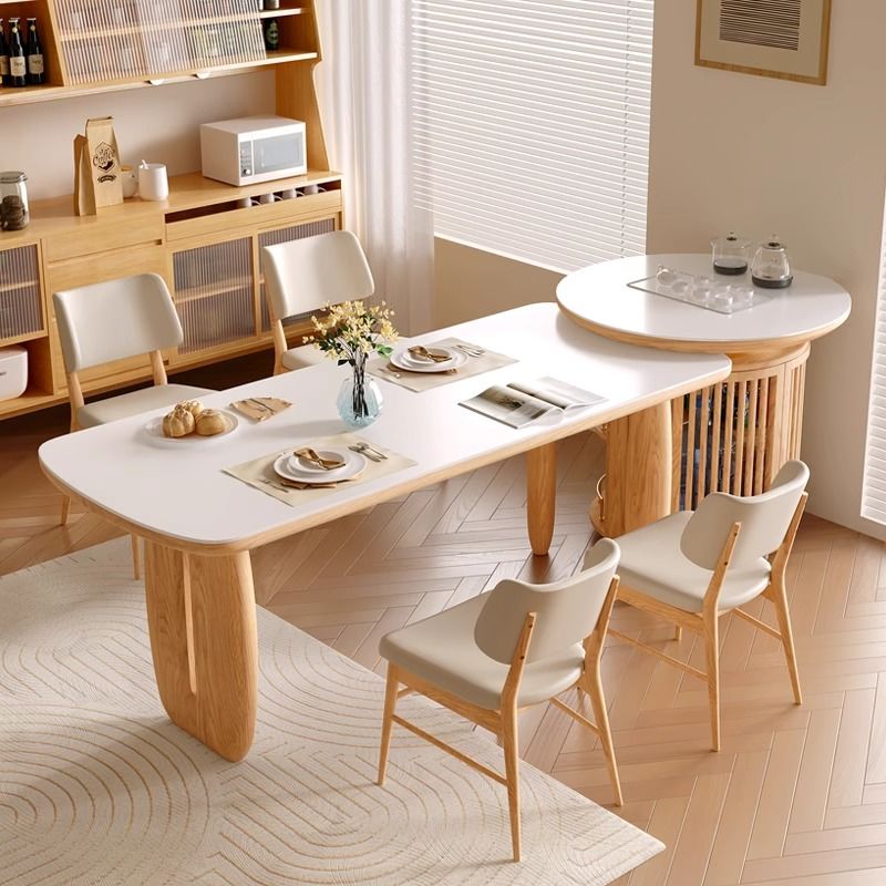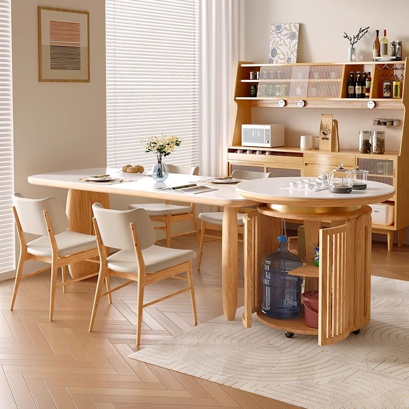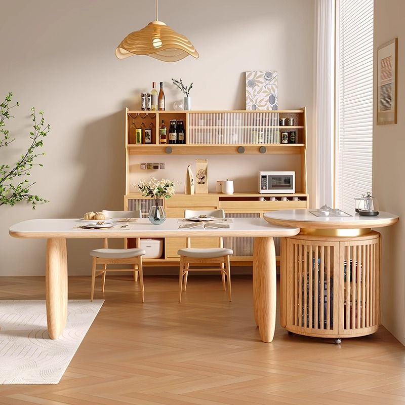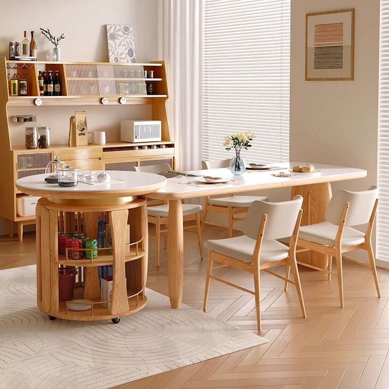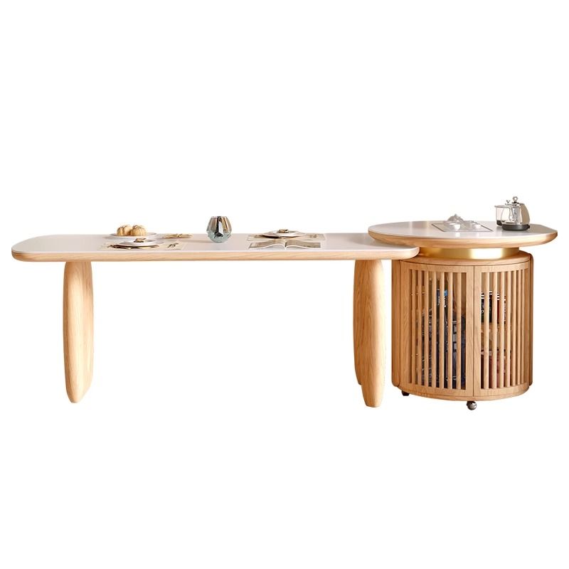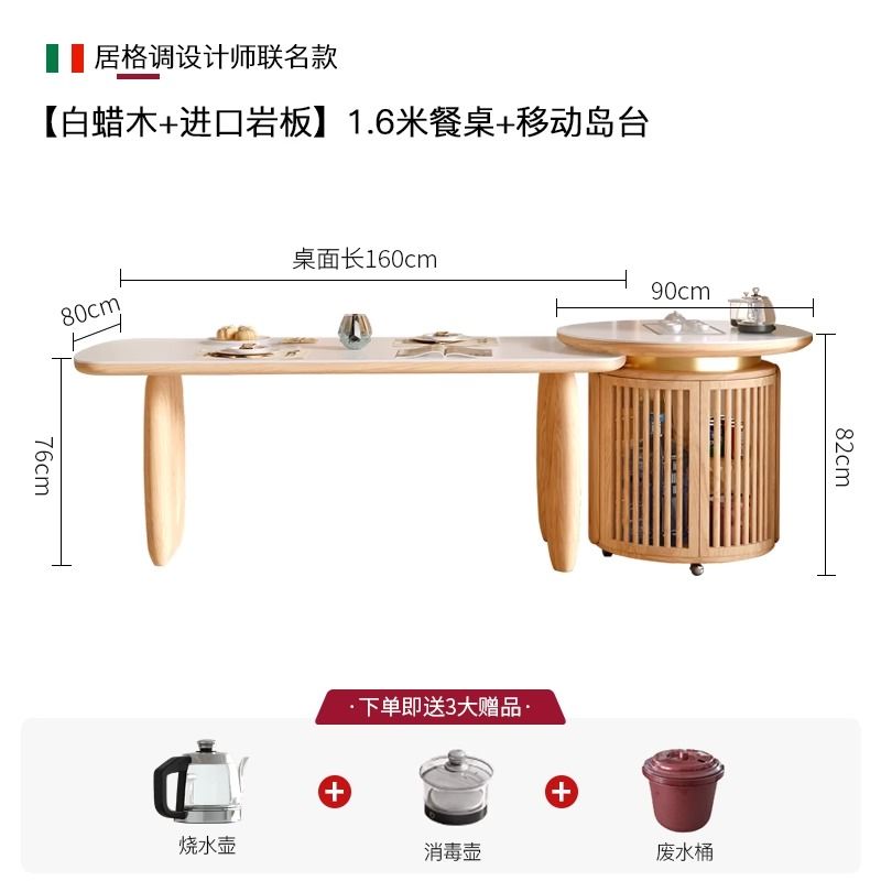 岩板岛台餐桌茶桌一体白蜡木实木北欧风格带移动茶台岩板吃饭桌子