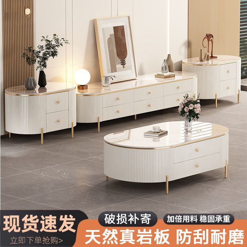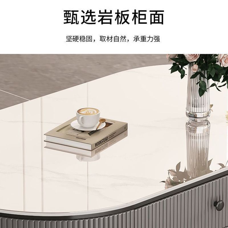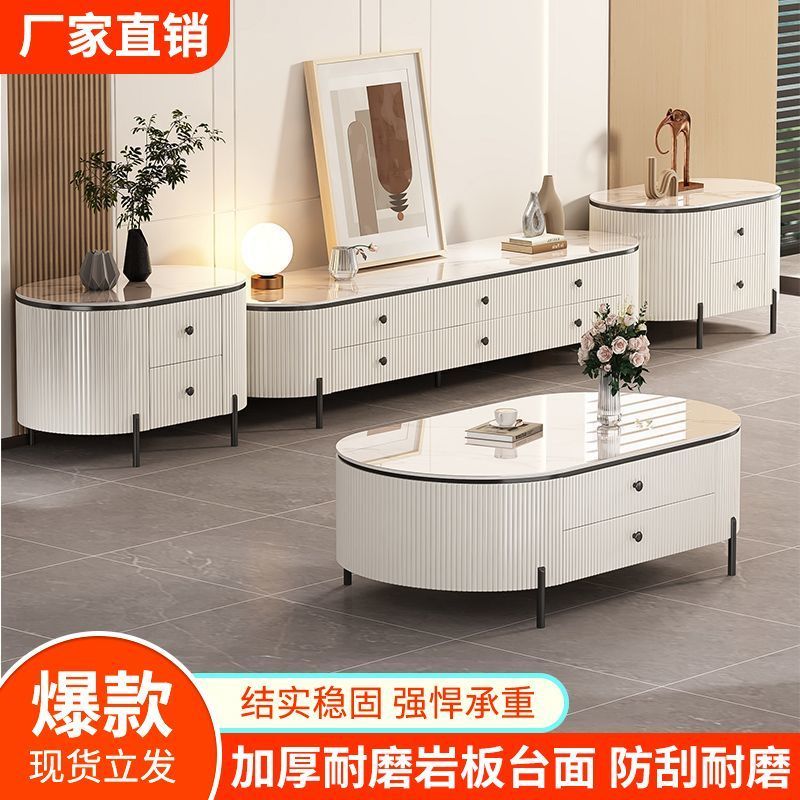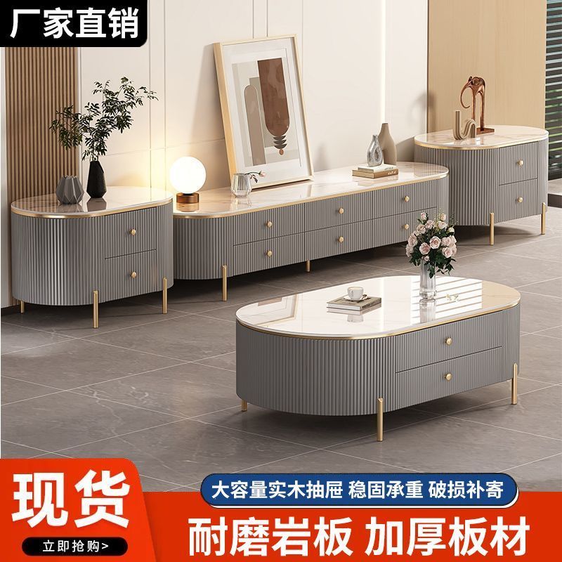 岩板茶几客厅家用2024新款轻奢高级感桌网红小户型椭圆茶几电视柜
