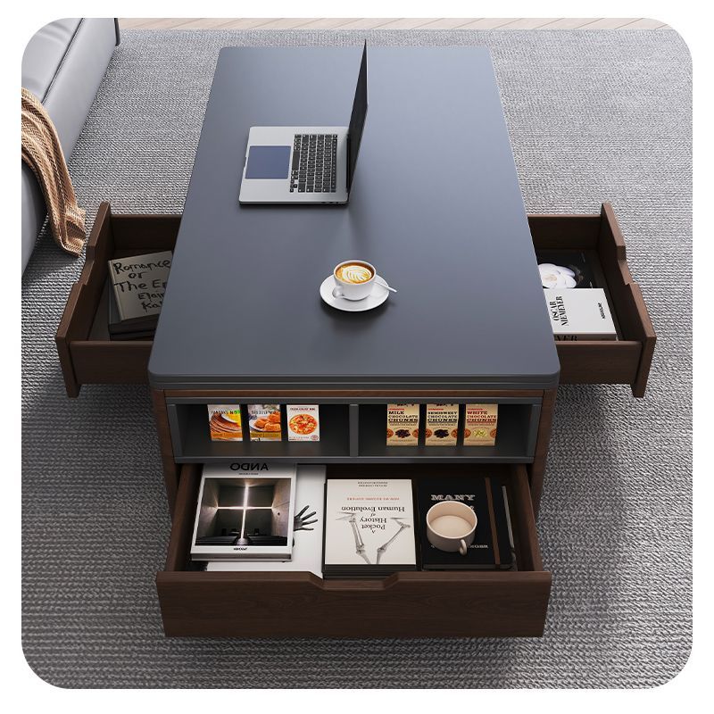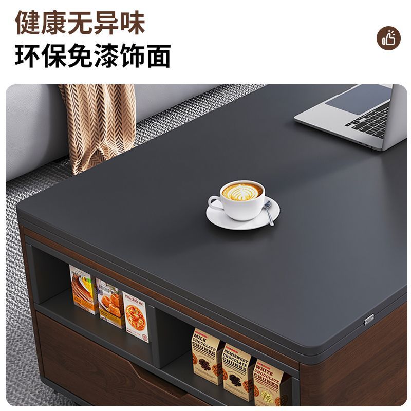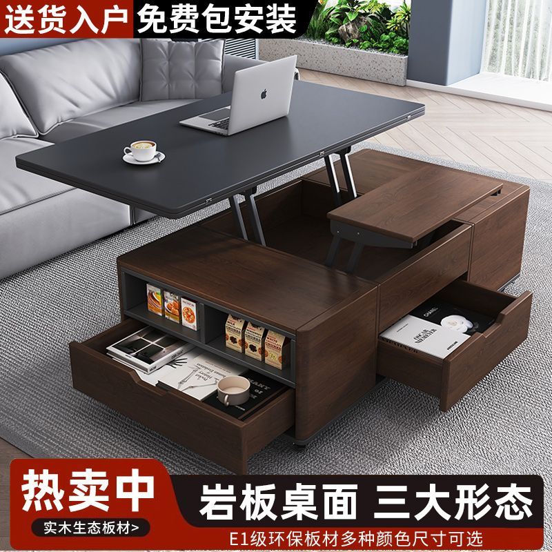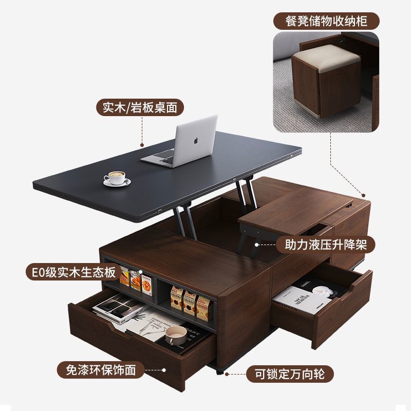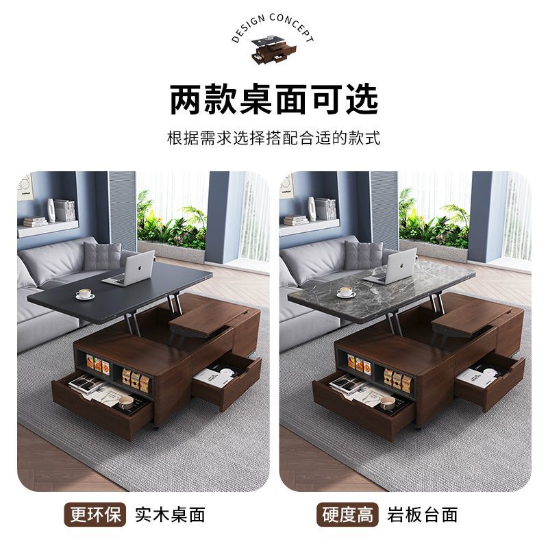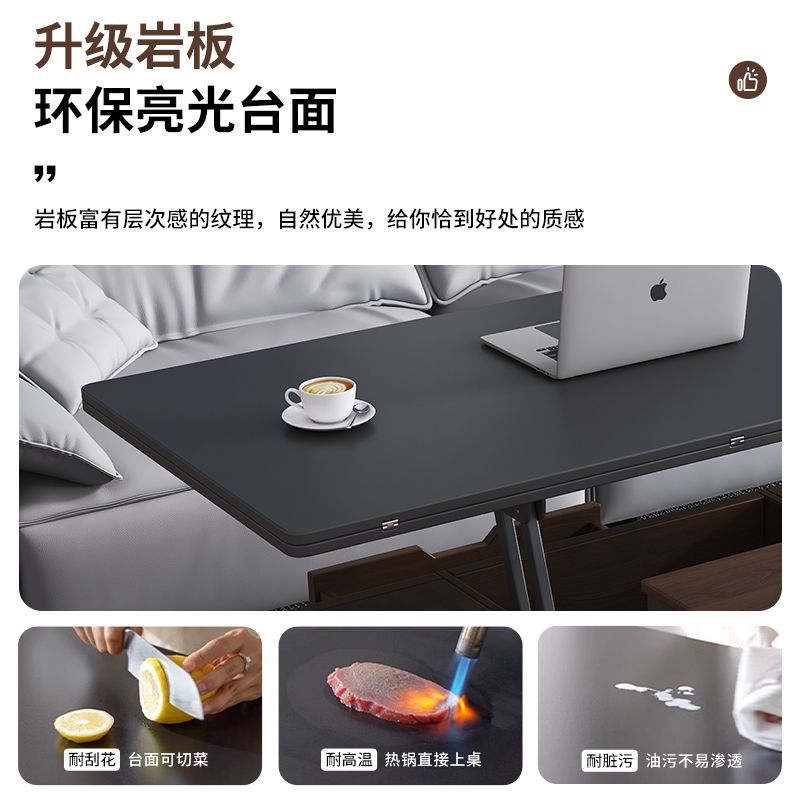 岩板茶几家用客厅小户型升降茶几餐桌一体北欧风折叠移动茶几带凳