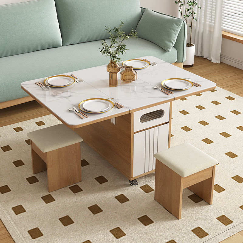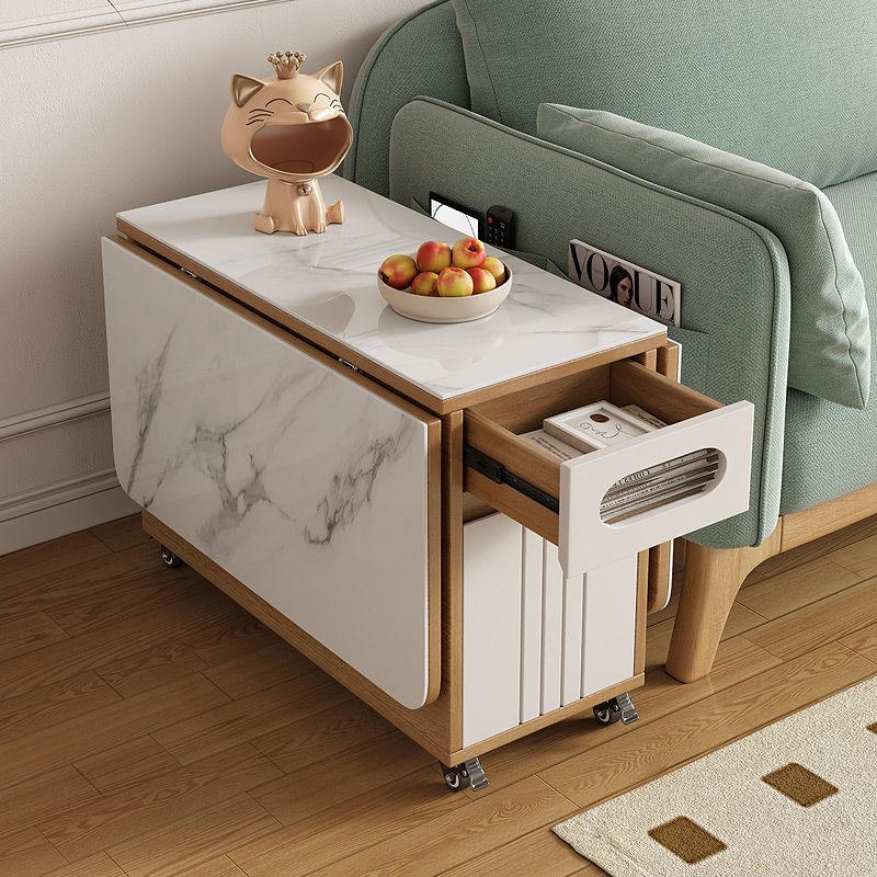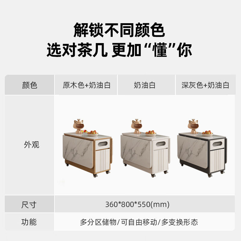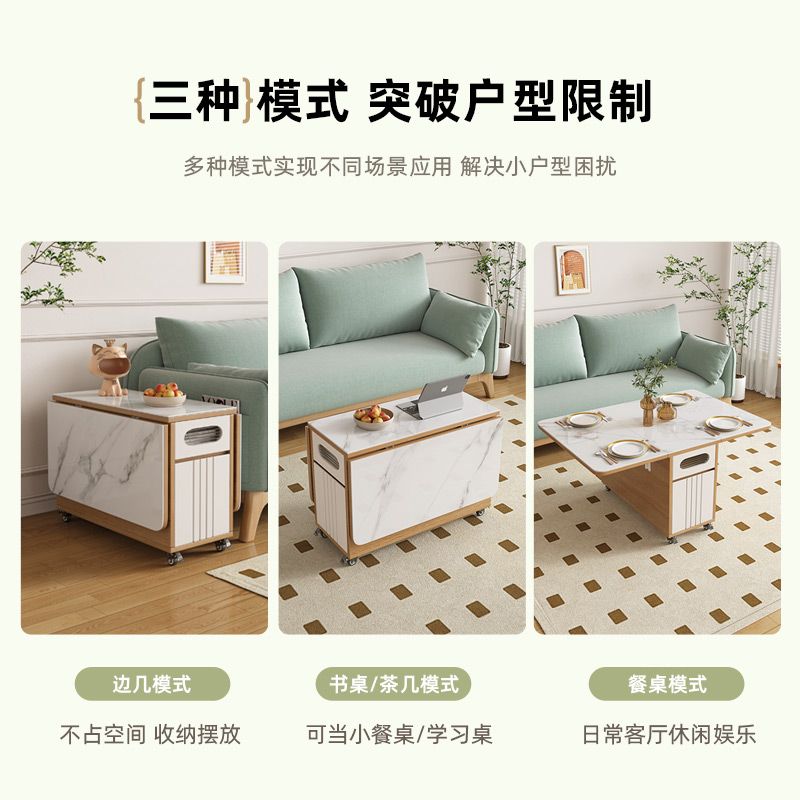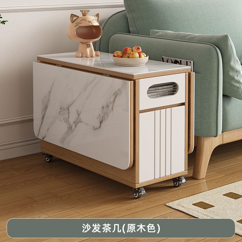 岩板茶几餐桌两用客厅沙发边几角几折叠边柜多功能小推车茶台窄桌