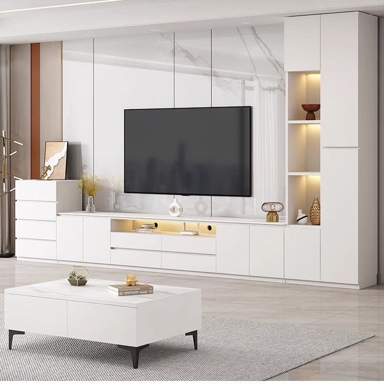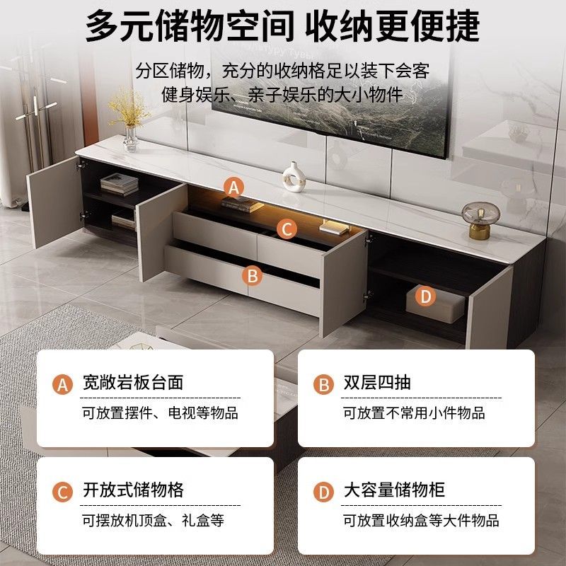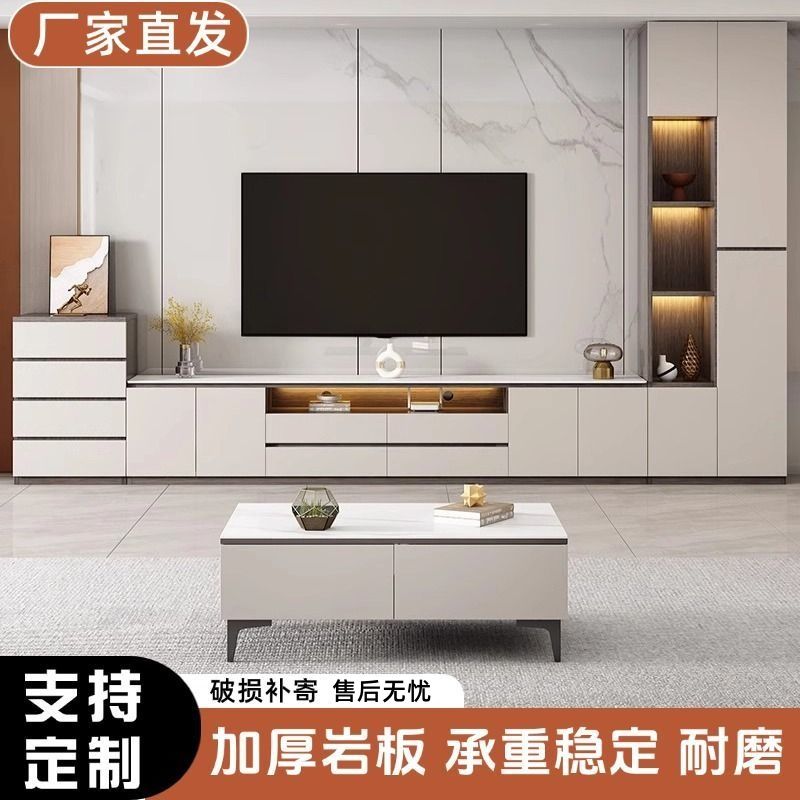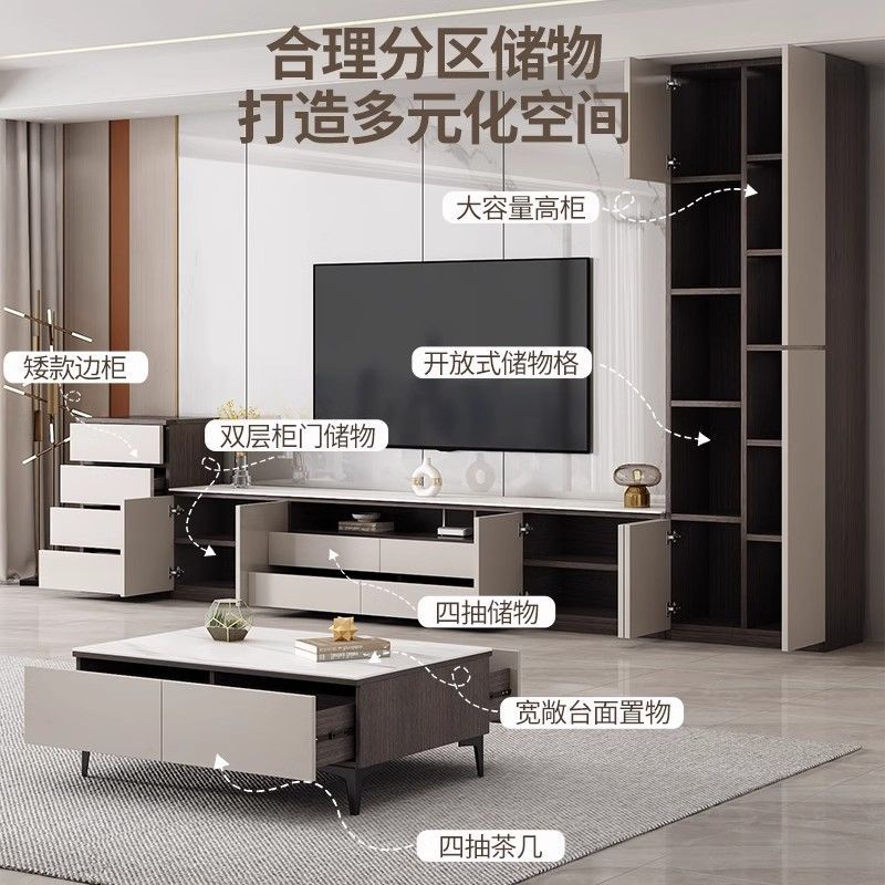 岩板落地电视柜茶几组合储物柜一体斗柜边柜小户型家用背景强柜