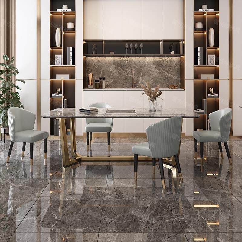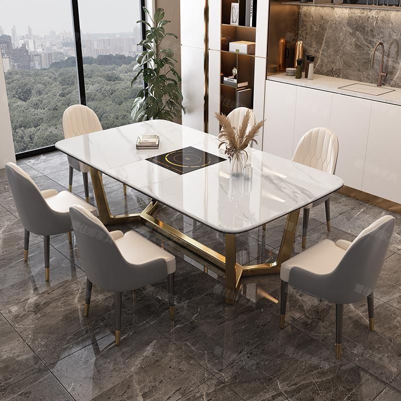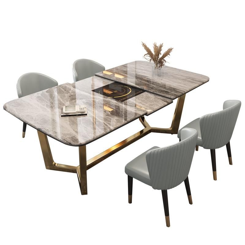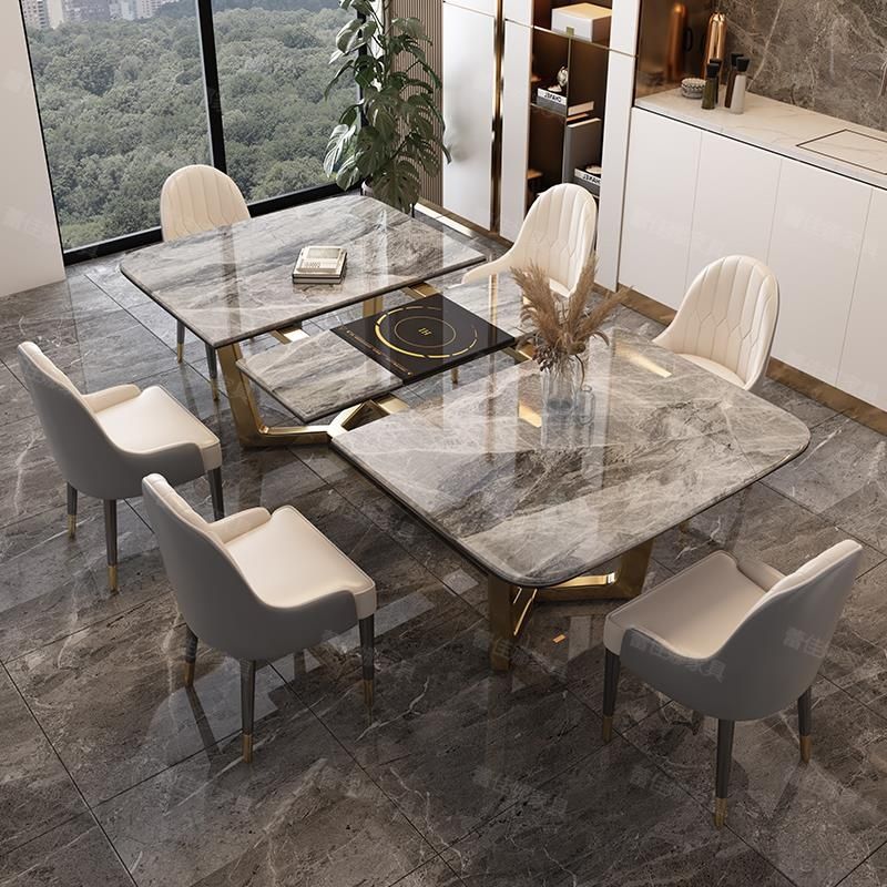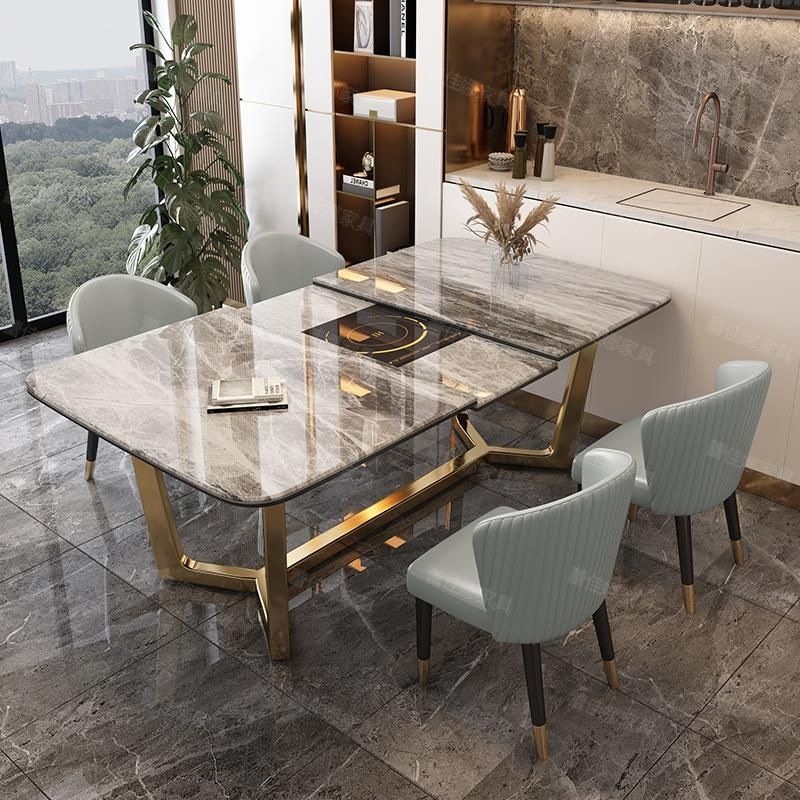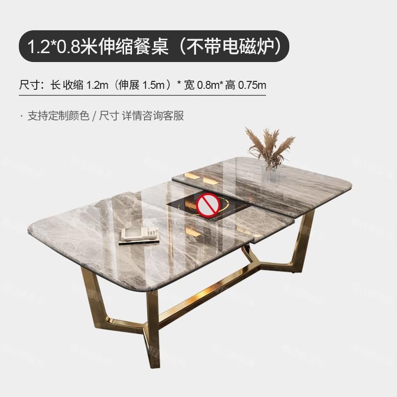岩板餐桌家用小户型现代简约伸缩餐桌椅组合轻奢折叠带电磁炉饭桌